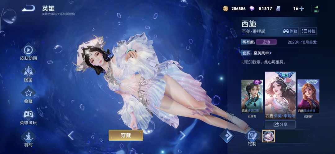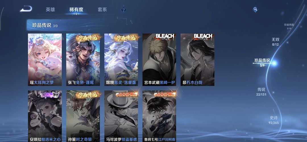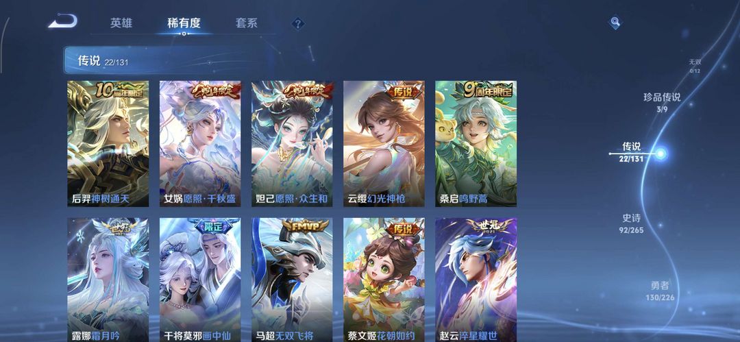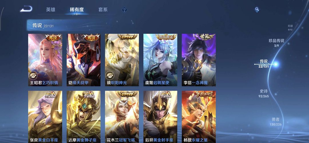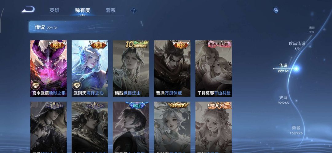装备描述:李白典藏,凯典藏,韩信典藏,22个传说,三个珍品传说,西施的至美和织梦人,全套铭文,体验卡随便用,