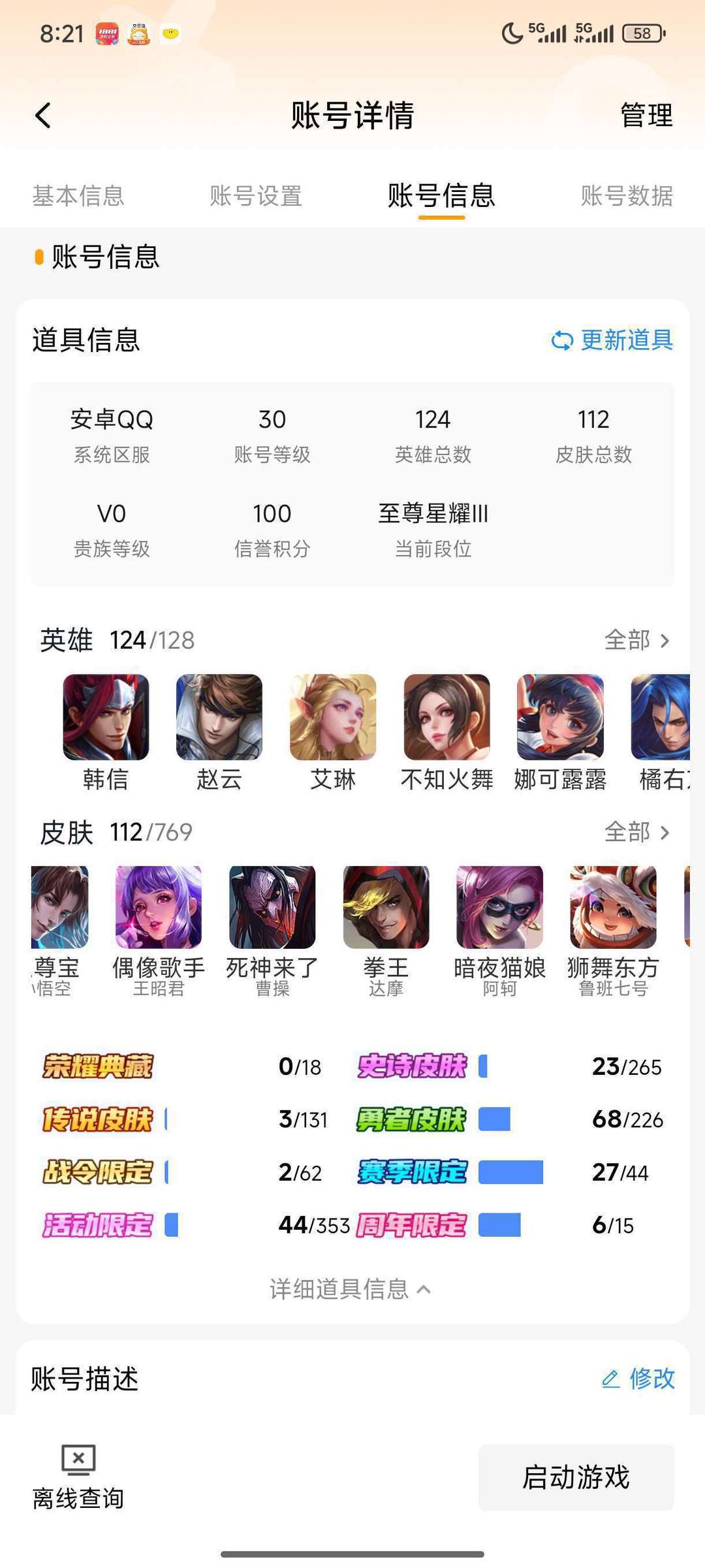 游戏区服:王者荣耀-QQ安卓-QQ账号