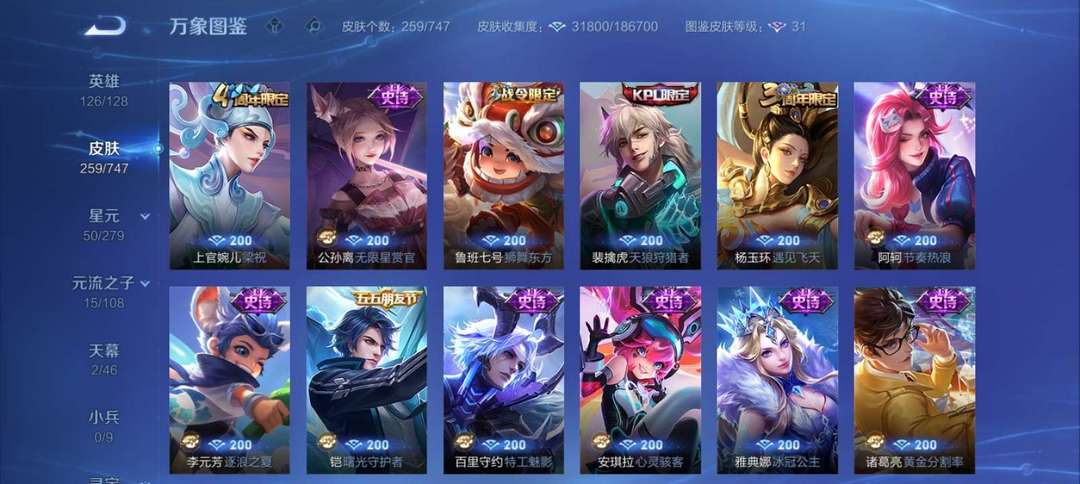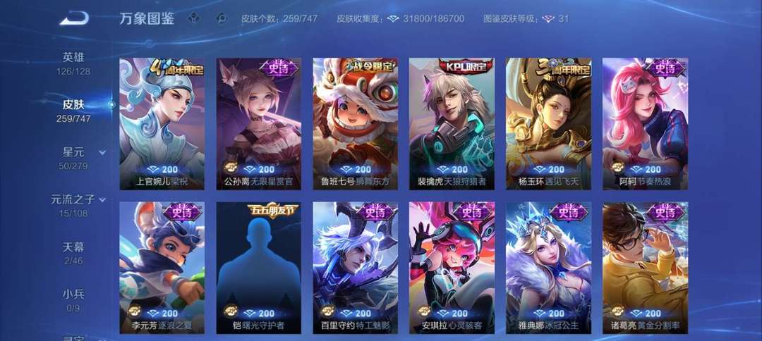 30级、V8、钻II、258套皮肤、排位匹配不限制!欢迎所有的兄弟姐妹们少来体验!!