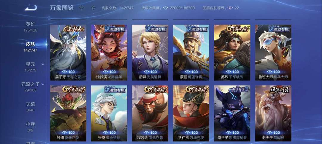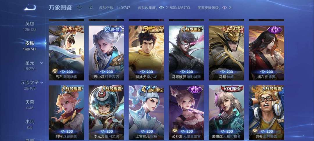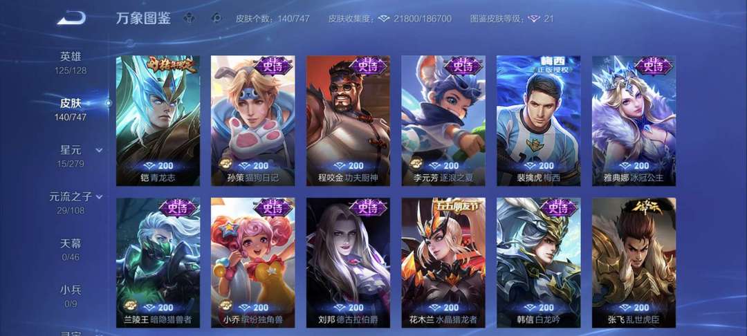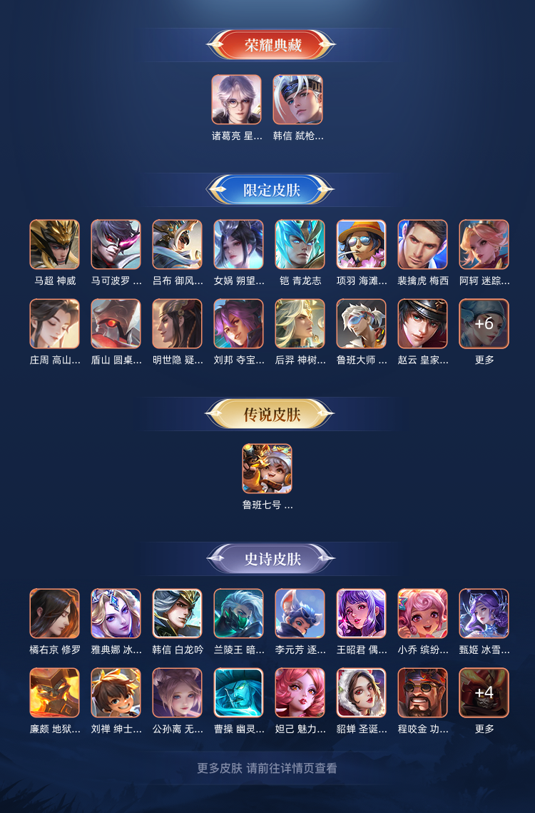 两典藏,韩信弑枪猎影,星域神使,鲁班晏虎,裴擒虎晏虎梅西,云鹰飞将,吕布御风骁将马超神威