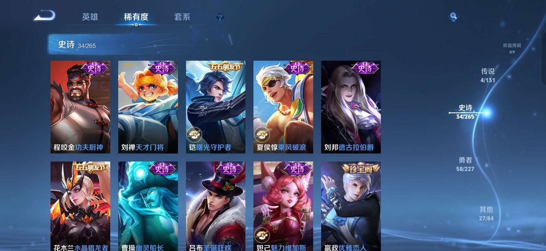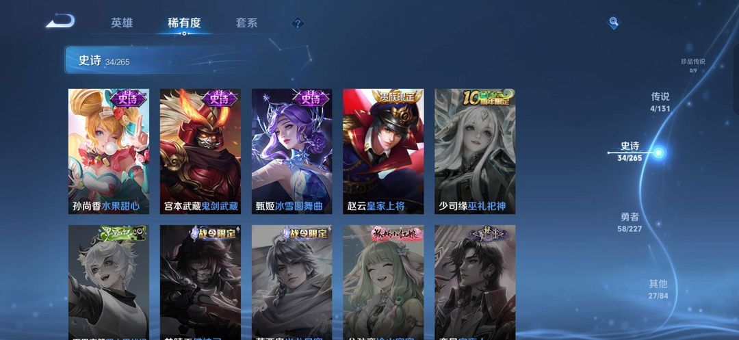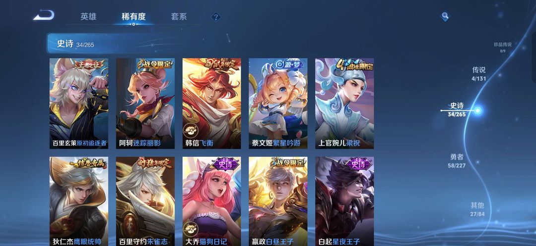 装备描述:123英雄除了龙人和武则天其他都有,主流铭文套装全满,元歌全皮诡秘之主传说,公孙离祈雪灵祝,韩信飞衡街头霸王,守约朱雀志,赵怀真神器限定