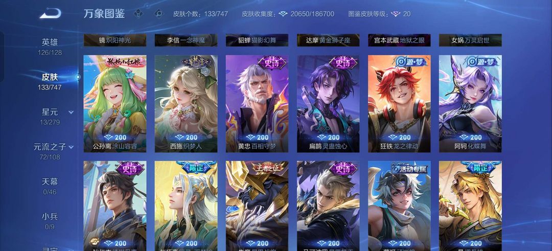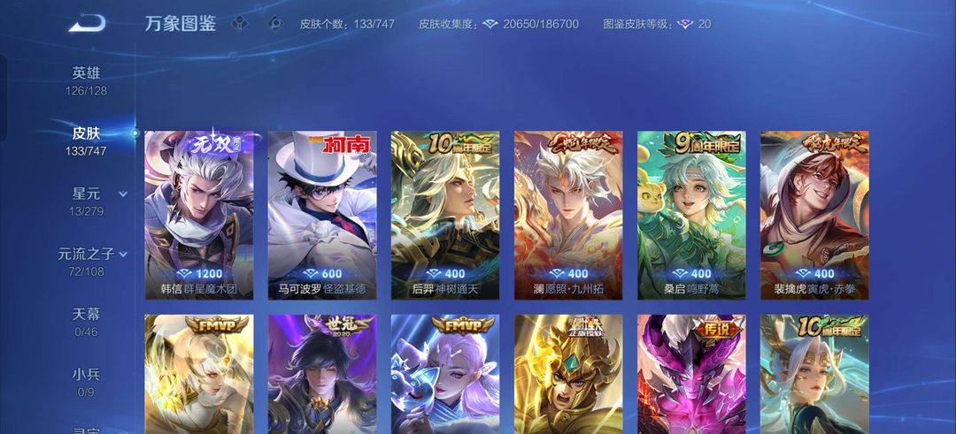 裴擒虎寅虎,韩信群星魔术团怪盗基德,地狱之眼,至尊宝,黄金狮子座,赵怀真器灵,澜蛇年限定,一念神魔,