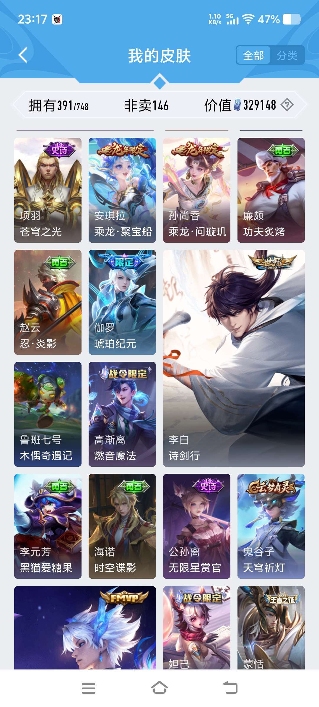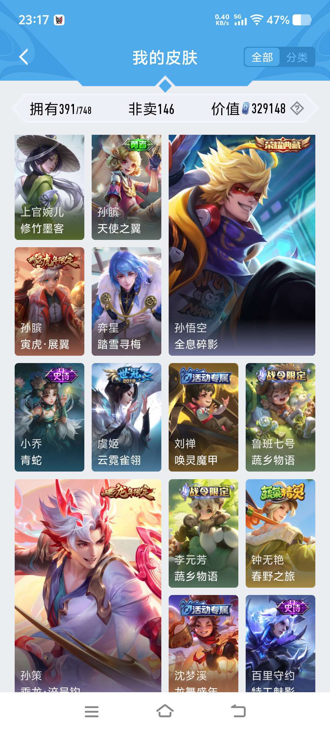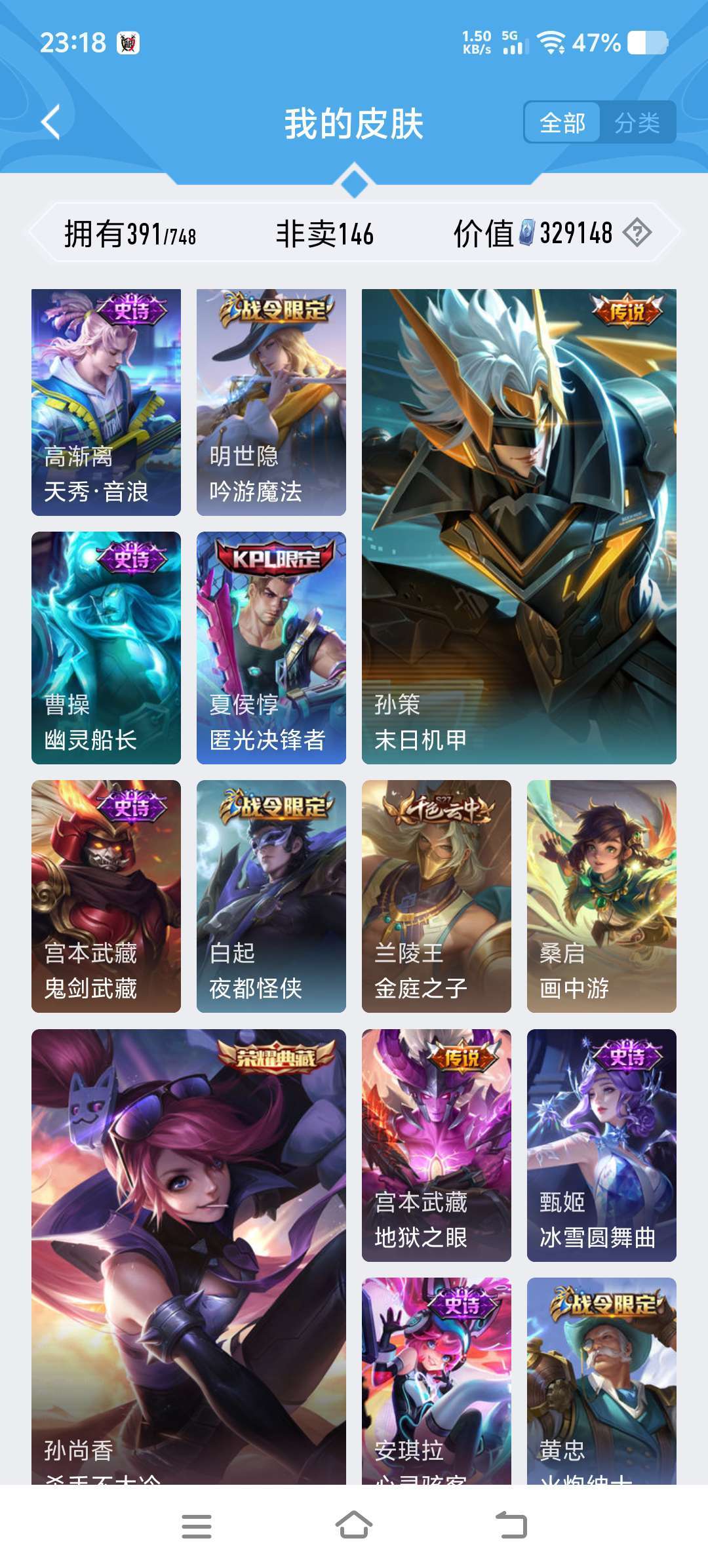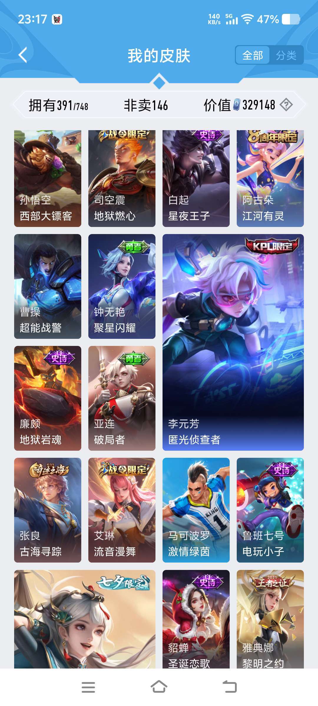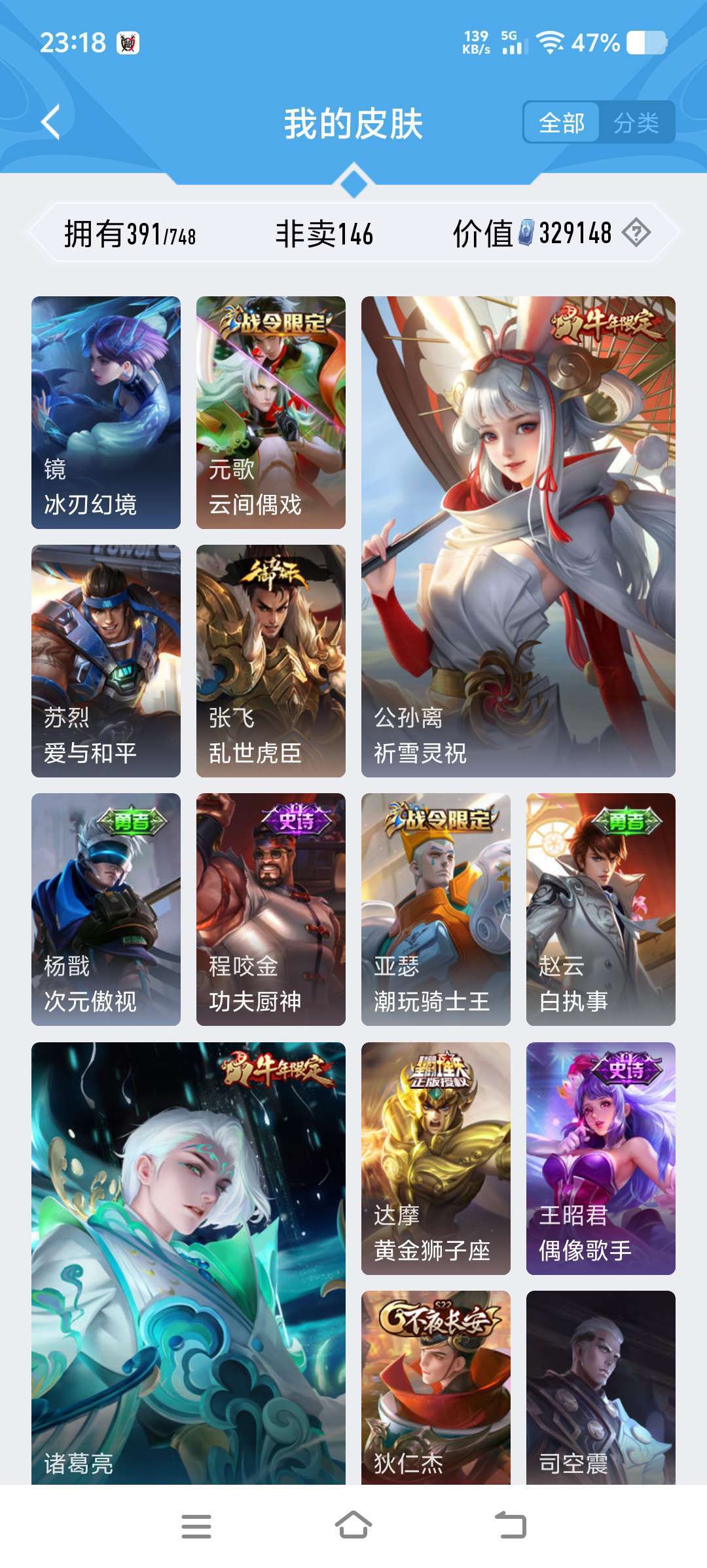 皮肤三百九十一铭文满级段位非凡王者荣耀典藏皮肤三个