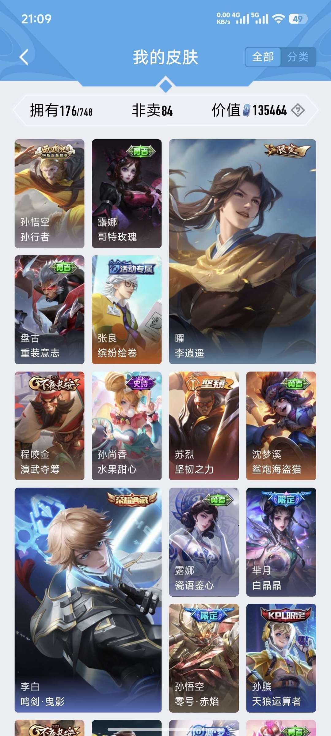 荣耀76星 李白典藏 李逍遥 灵界契约 信用分满