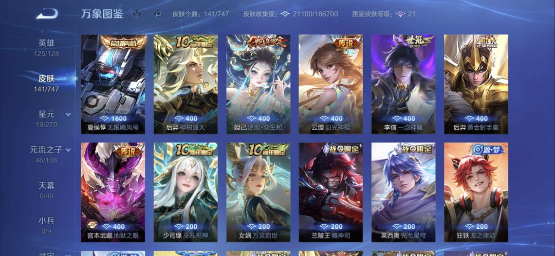 小国项羽 夏侯惇在榜 金标 无限飓风号 宫本武藏 幽冥妲己蛇年限定 后羿黄金射手座传奇100星 ′