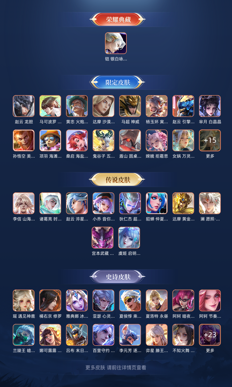 限制: 租号3次及以上 |装备描述:>>>>>>毁号,涉及毁坏虚拟财产罪及计算机安全罪,请文明游戏素质游戏,让我们共建美好租号平台>>>>>> 本游戏账号: V8用户,基础段位:永恒钻石V,英雄多,皮肤多。典藏皮肤11个,感受典藏皮肤带来的优质体验快感,FMVP皮肤9个,尽情享受FMVP皮肤带来的主角光环, 私人所属英雄皮肤有:诸葛亮 星域神启||铠 银白咏叹调||孙尚香 杀手不太冷||鲁班七号 星空梦想||李白 鸣剑·曳影||武则天 倪克斯神谕||关羽 赤影疾锋||貂蝉 幻阙歌||花木兰 九霄神辉||孙悟空 全息碎影||小乔 天鹅之梦,等等 注意事项: A.游戏过程中请不要恶意挂机或者不文明发言;B.恶意挂机、顶号等行为将被拉黑无法再次下单;C.进入游戏后中途请勿退出登陆,否则无法再次上号;D.部分账号由于异地登录可能会出现密码错误提示,通常再尝试5-6次后可上号。 |||||||||>喜欢本账号请点 ☆收藏☆ 方便下次租用,谢谢光临惠顾|||||||||