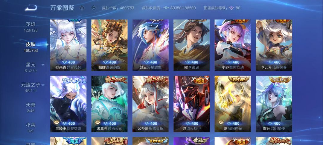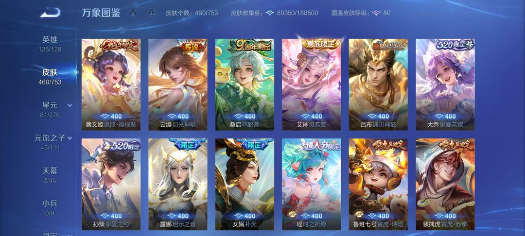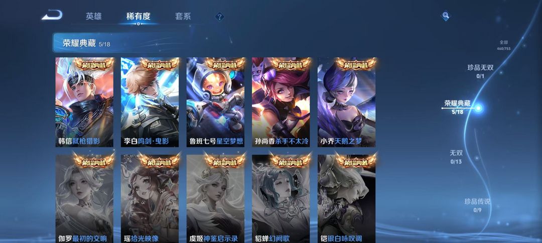 v10❤️460皮肤❤️5个荣耀典藏❤️星空梦想❤️天鹅之梦❤️金色仲夏夜❤️炽阳神光❤️挚爱花嫁