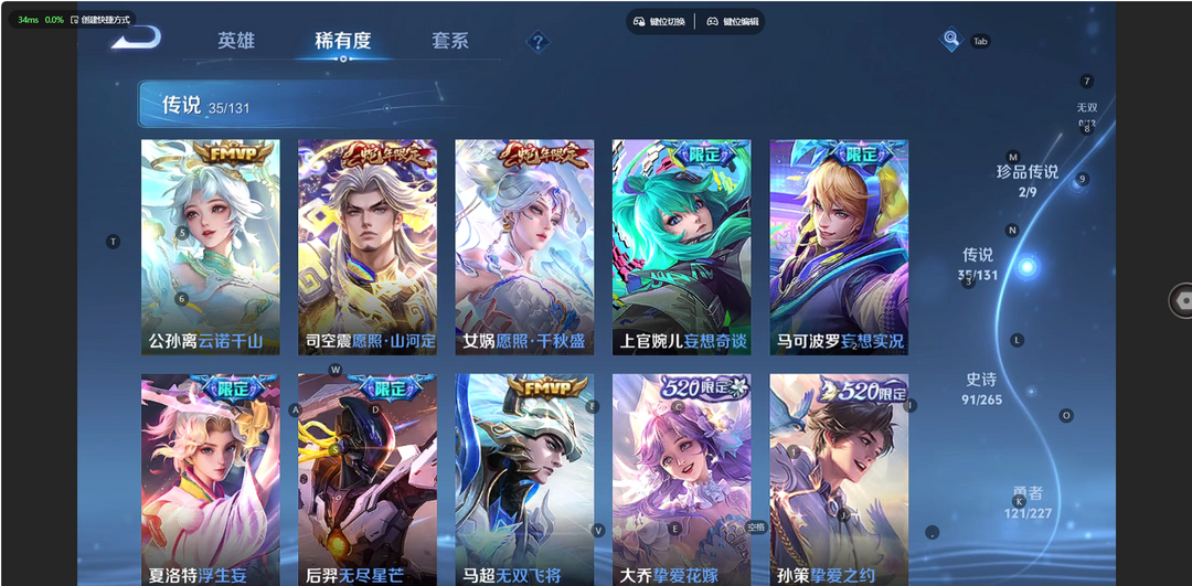 英雄:墨子(墨子 龙骑士,墨子 进击墨子号,墨子 金属风暴,墨子 神迹守卫);孙悟空(孙悟空 零号·