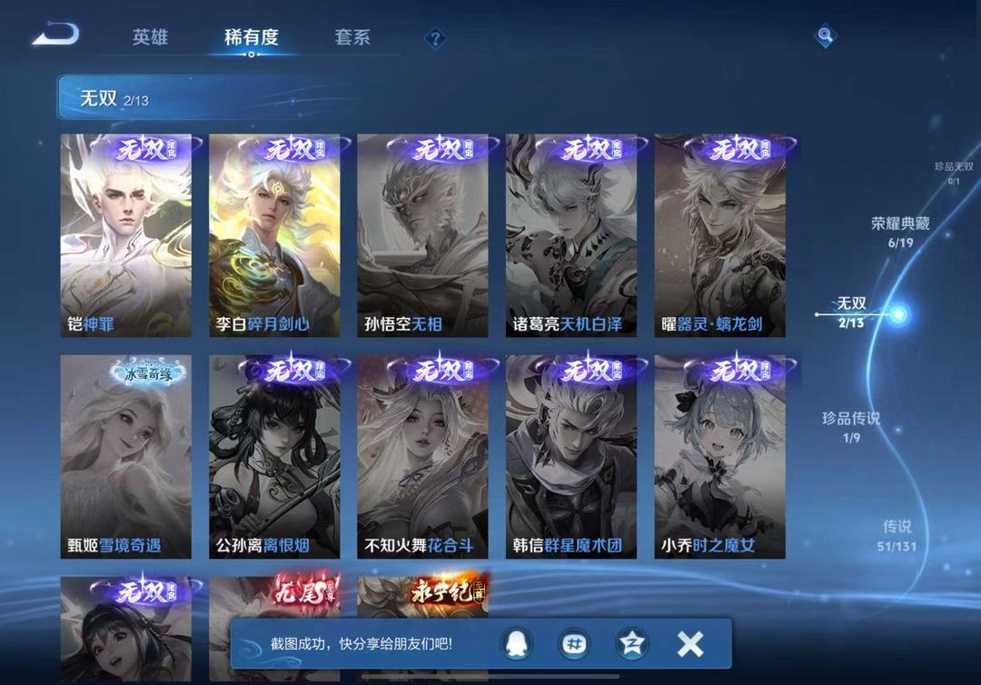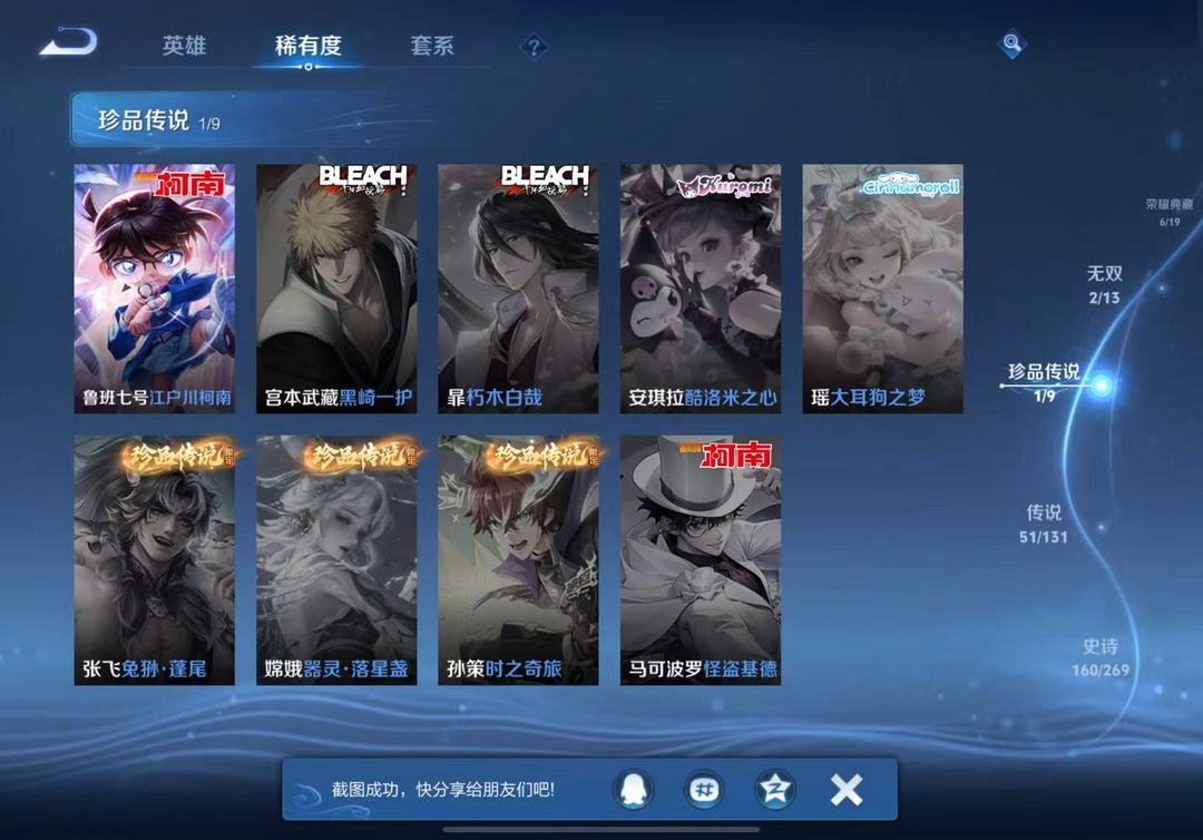V10丨500皮肤7典藏水晶丨凯+李白无双丨柯南丨包天特惠