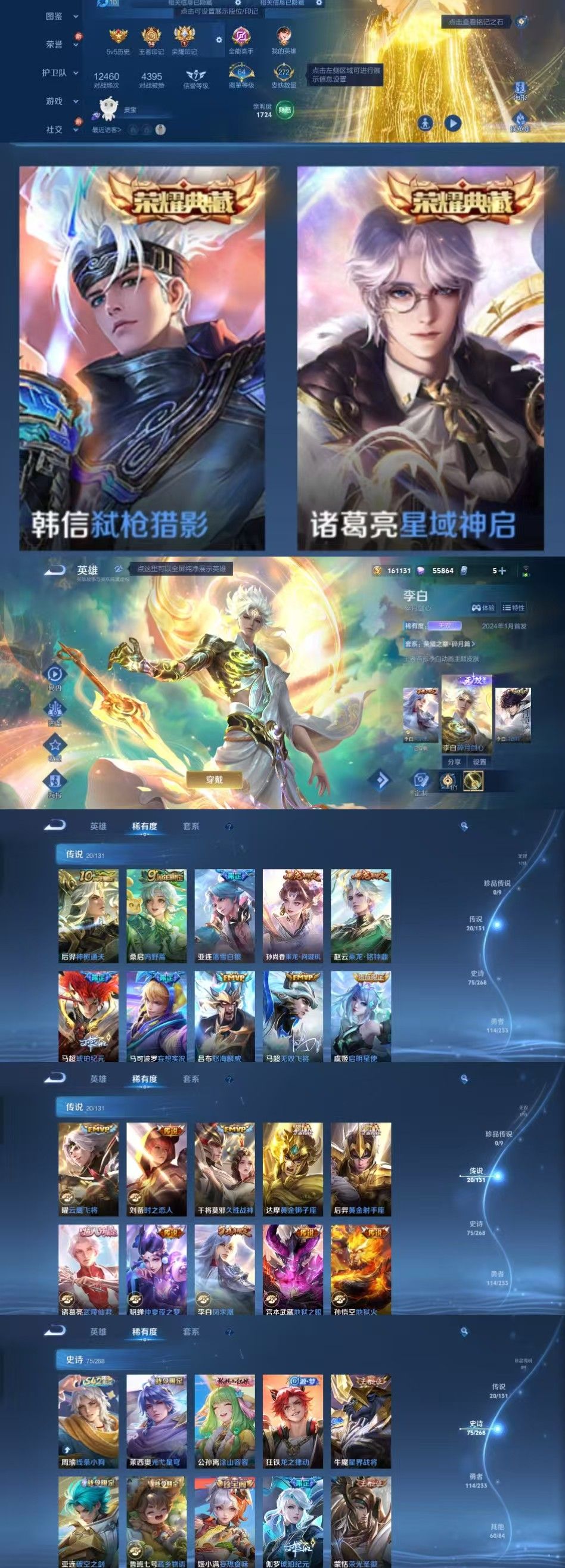 限制: 撤单率<49%才可租用此帐号装备描述:时间到了还登录白玩或者顶号全部改密拉黑处理永不解除,顶号机器会秒禁玩改密,顶号不仅拉黑还没得玩,赚三两块不容易,请理解谢谢。 ❤❤❤❤❤❤❤❤❤❤❤❤❤❤❤❤❤❤❤ 请勿开挂,挂机,送头,骂人,撤单后游戏等如有违规永久拉黑永不解除。 重置二级密码不要费劲了,号主每天都会上号查看,多行不义必自毙,人在做天在看,多做好事多自律,少做缺德事。 该号英雄128个皮肤309个,典藏2个,无双1个,星传说1个,传说20个,史诗75个,祝您游戏愉快~
