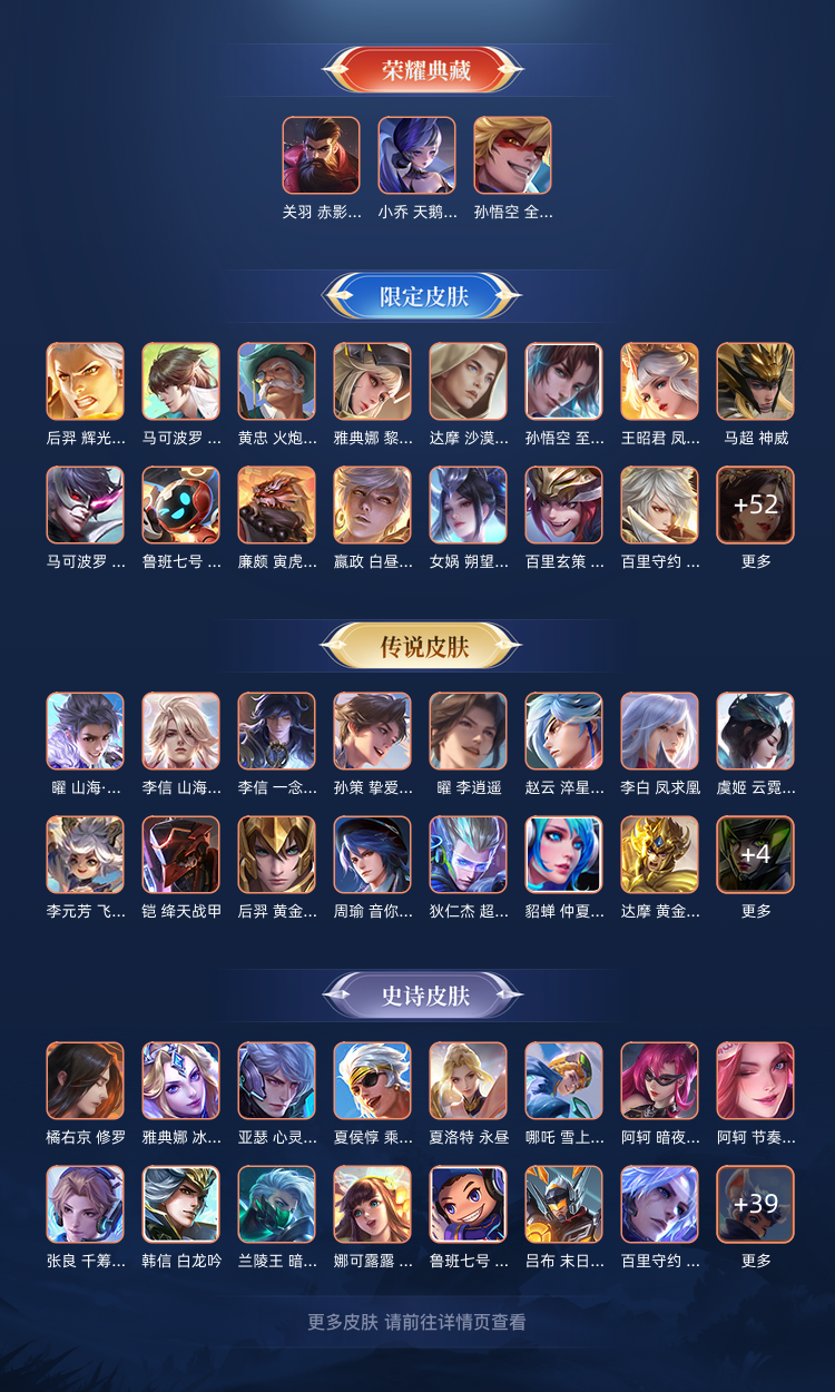 装备描述:极品皮肤号476皮肤3水晶2无双皮❤️猴子无相无双皮❤️35传说皮❤️十周年限定李逍遥白虎志等超多皮❤️