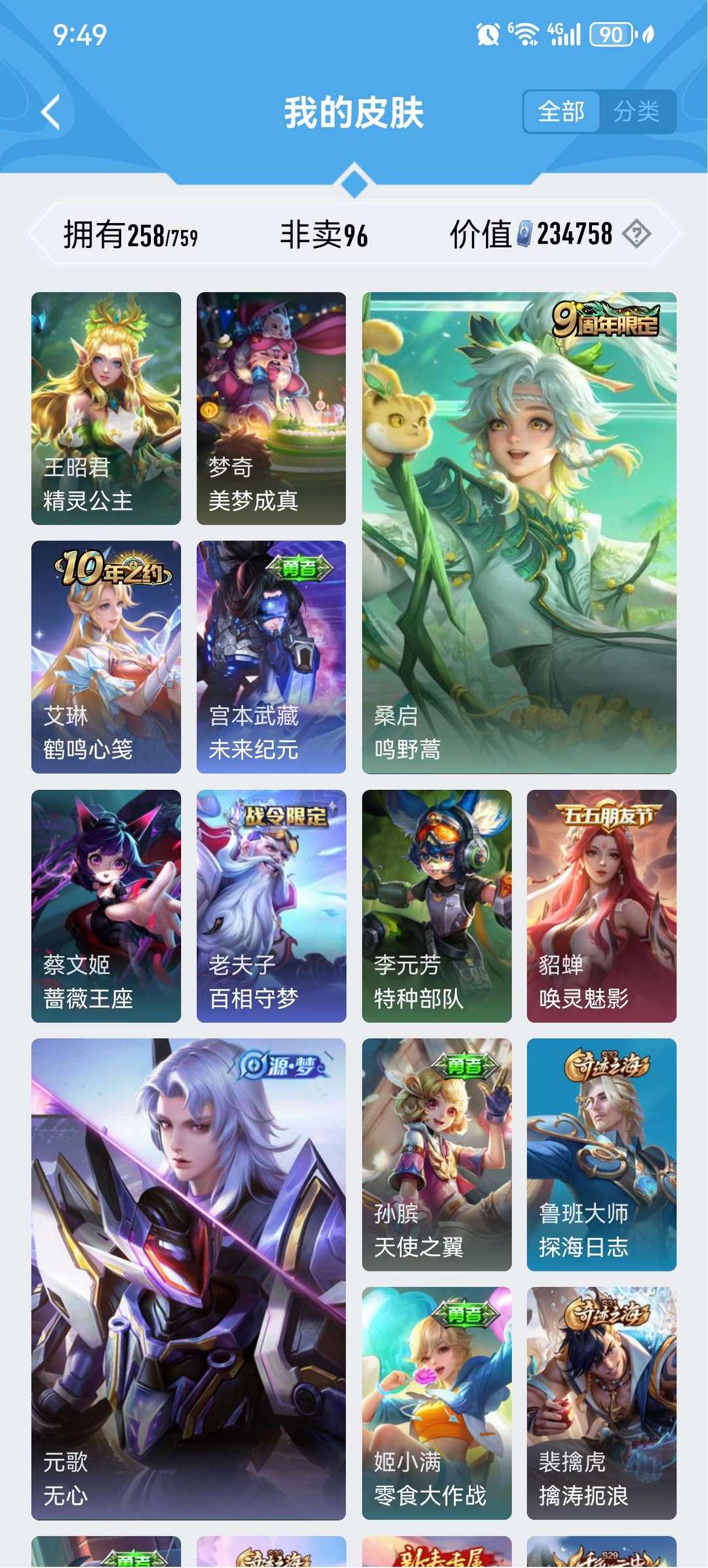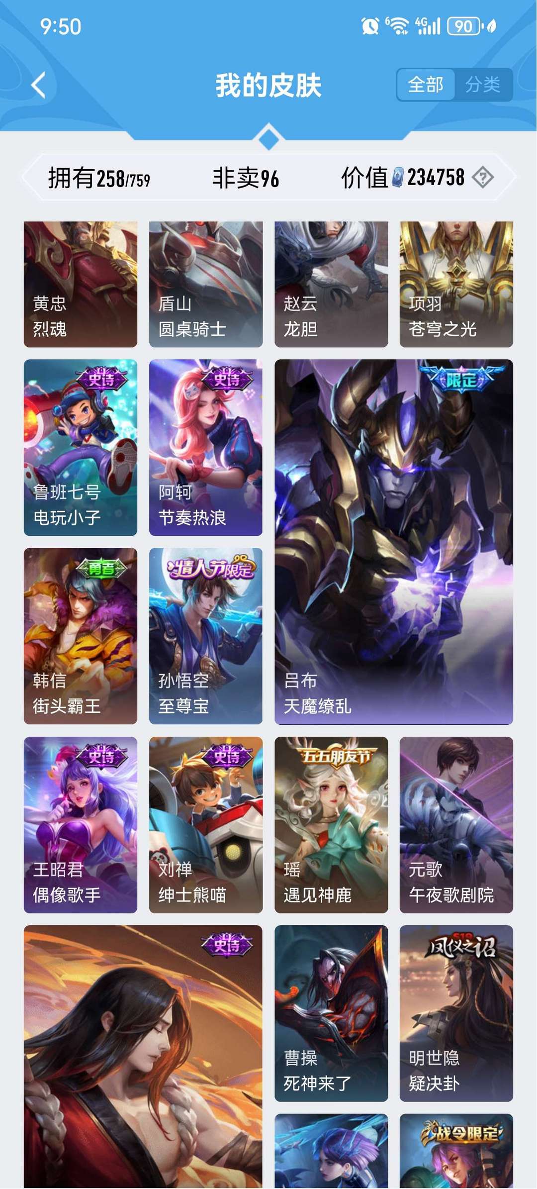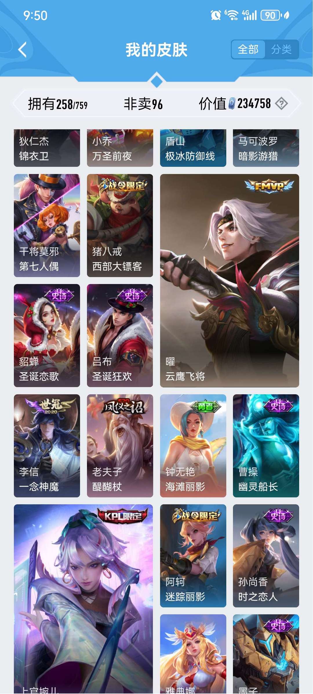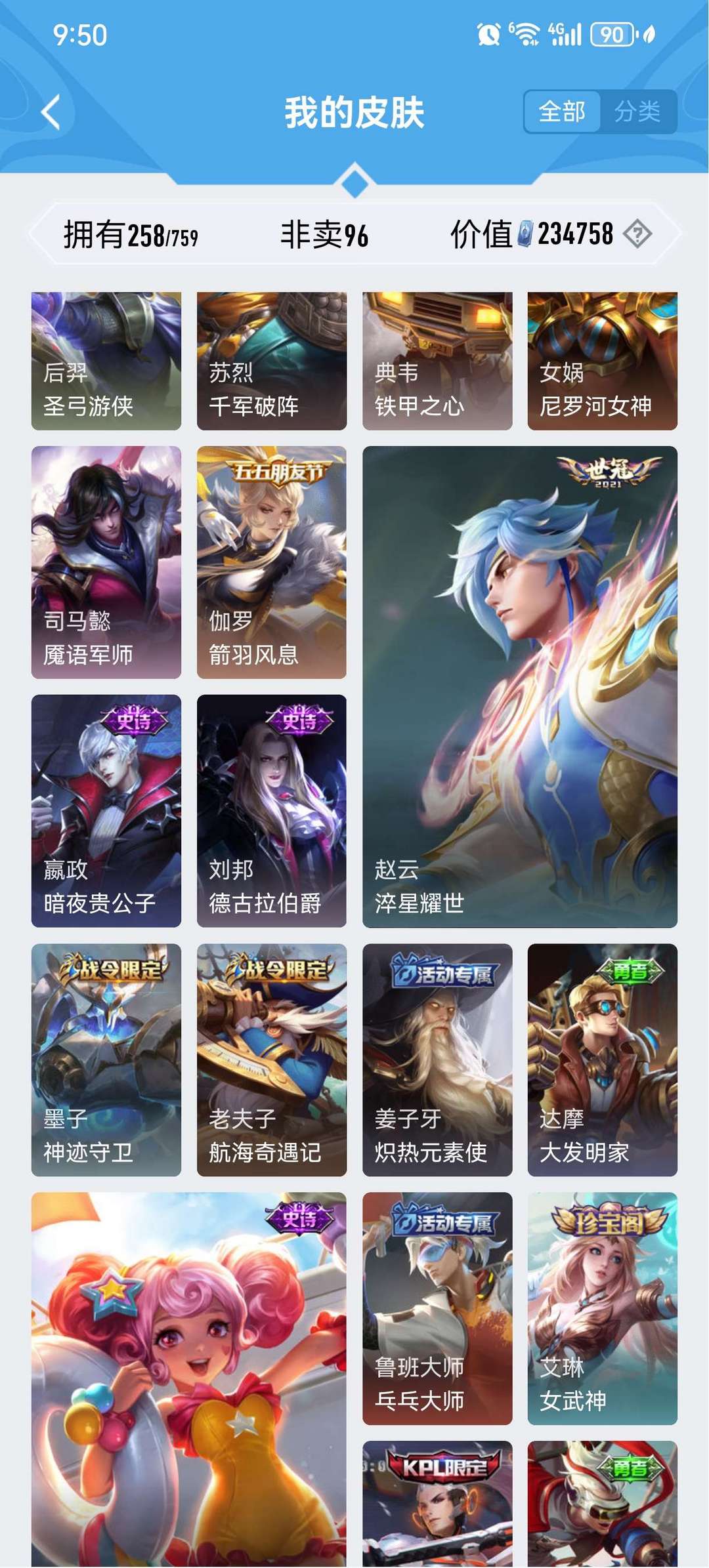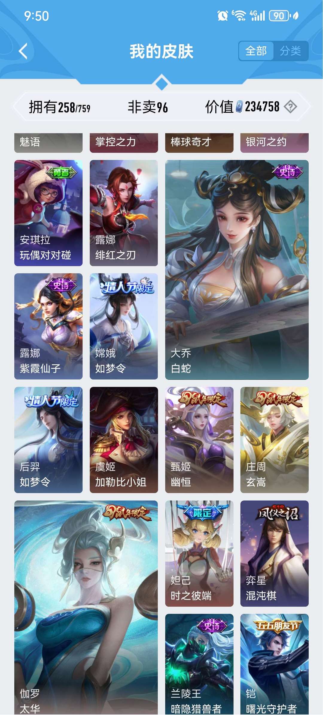 皮肤挺多的典藏也不少v9号,只能挂10个图还有很多其他皮肤