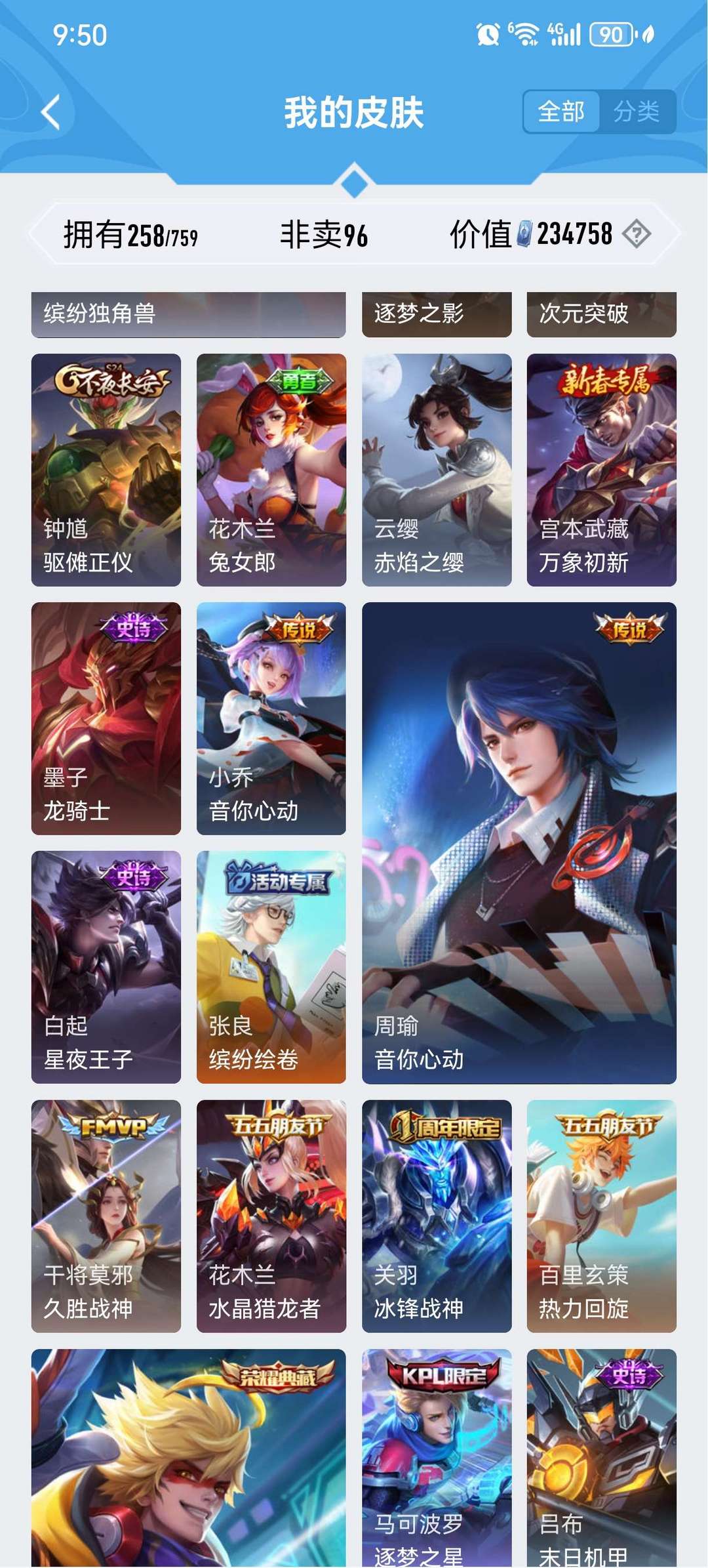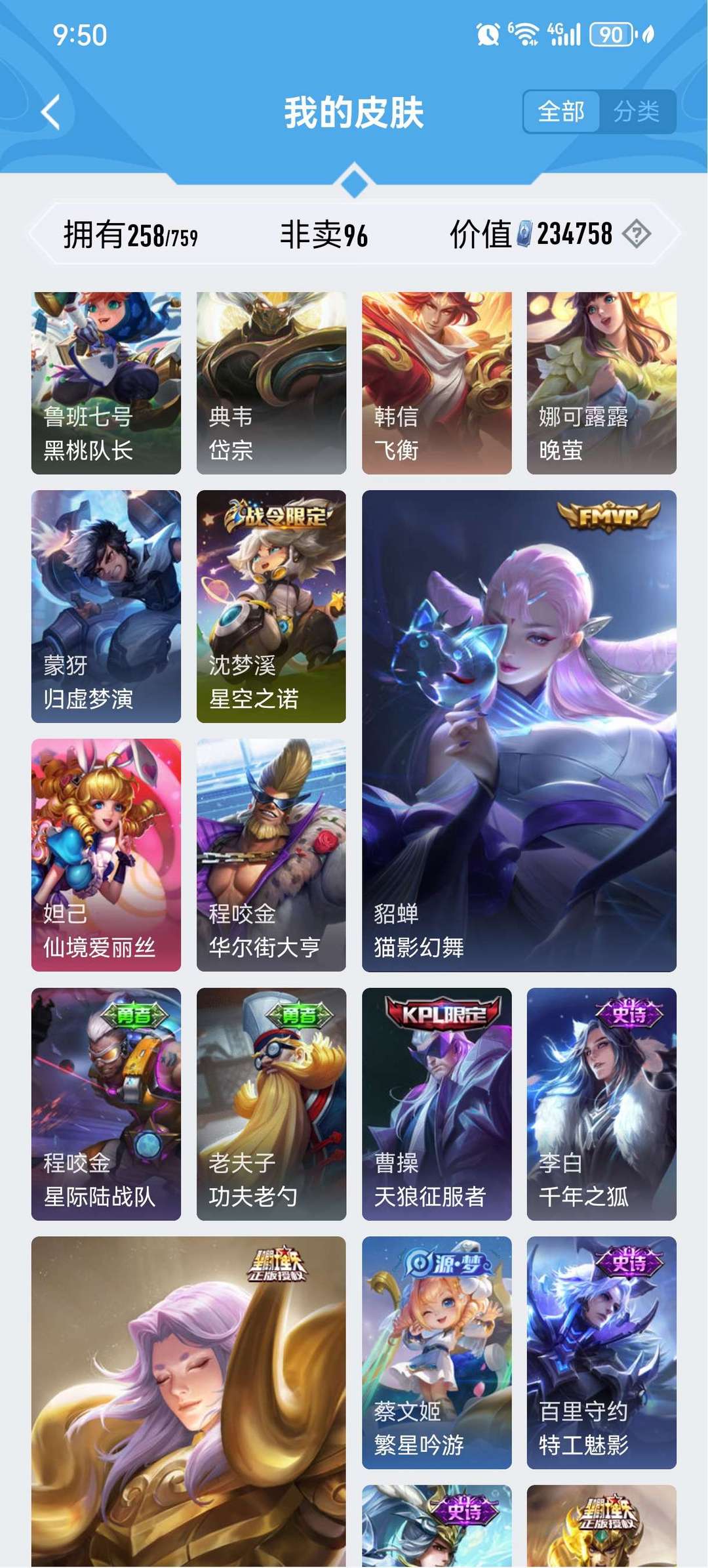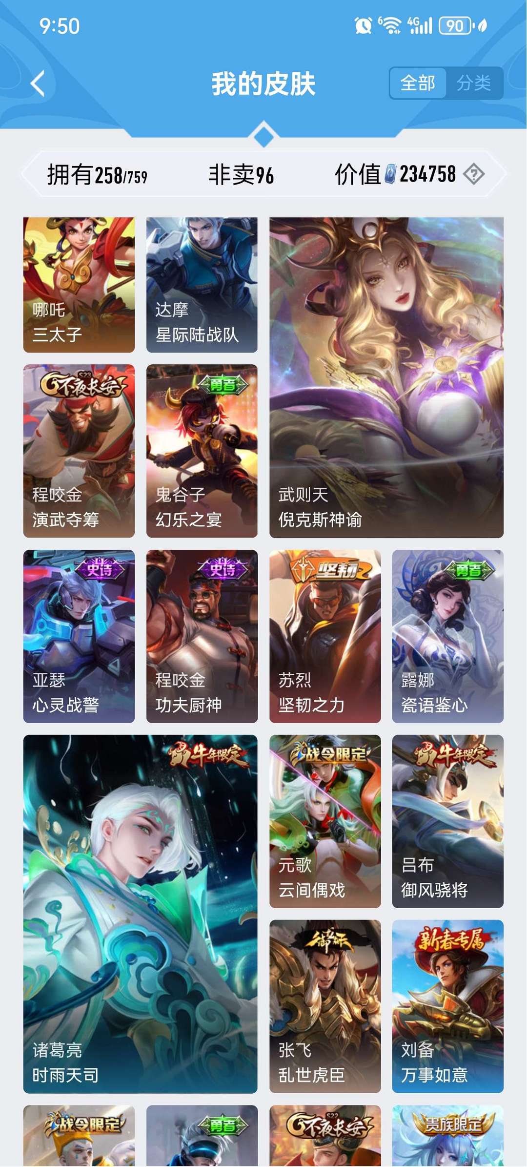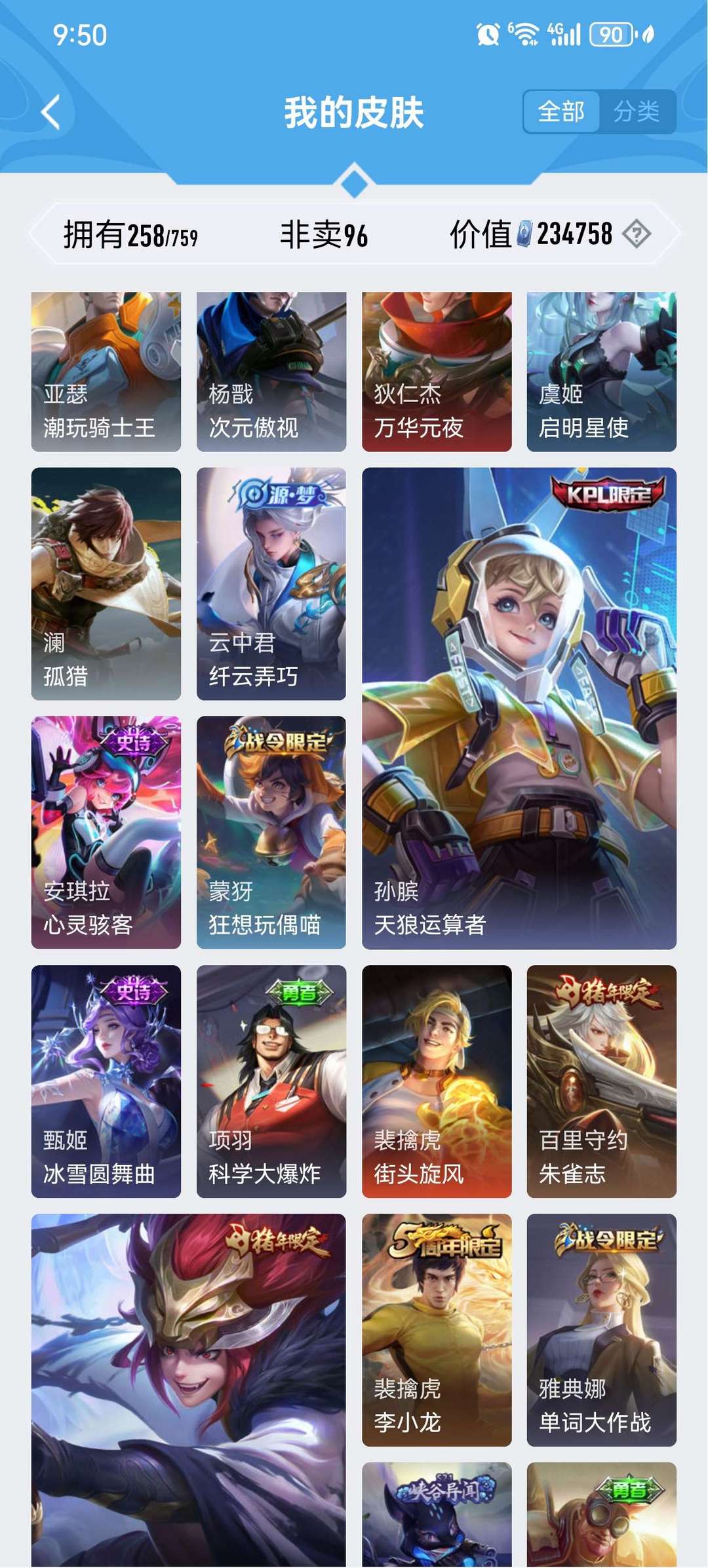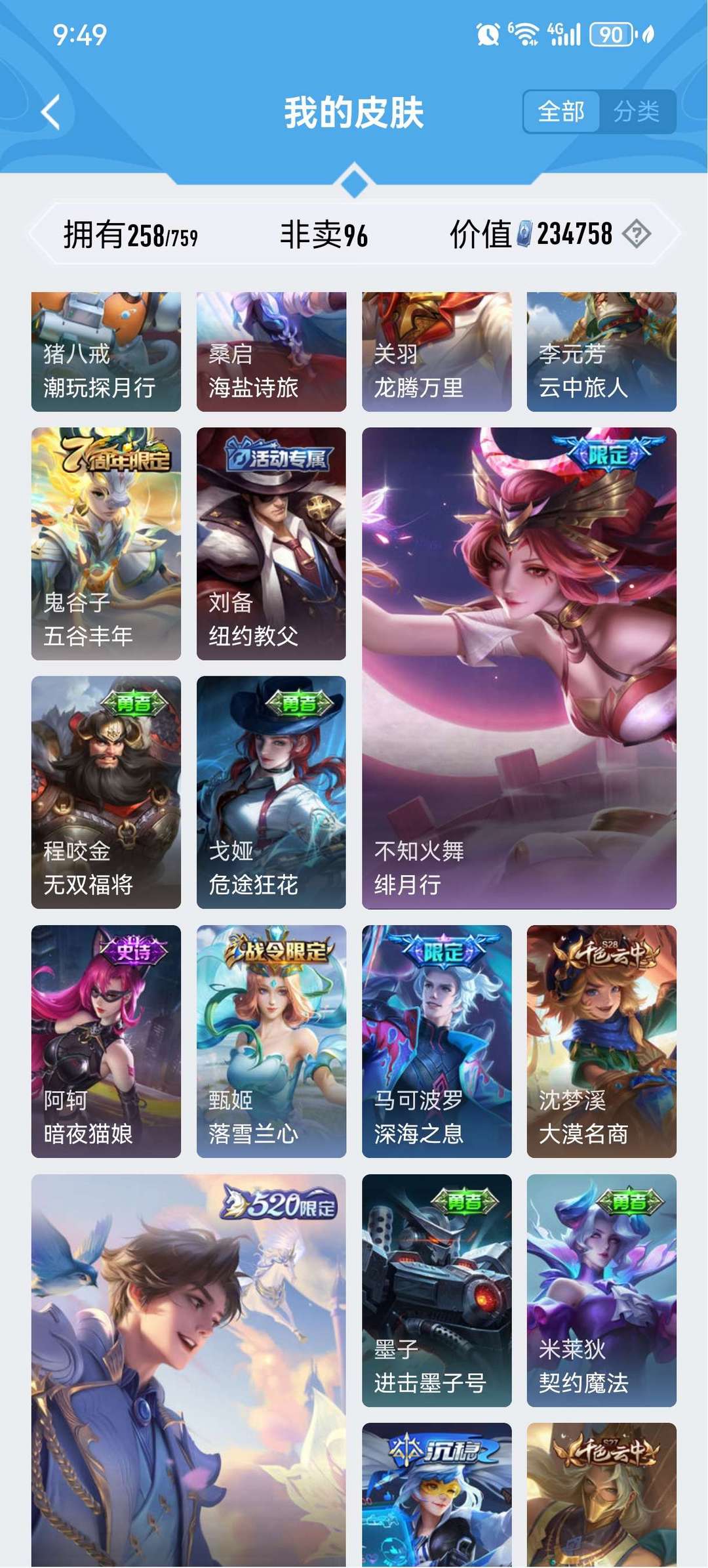 皮肤挺多的典藏也不少v9号,只能挂10个图还有很多其他皮肤