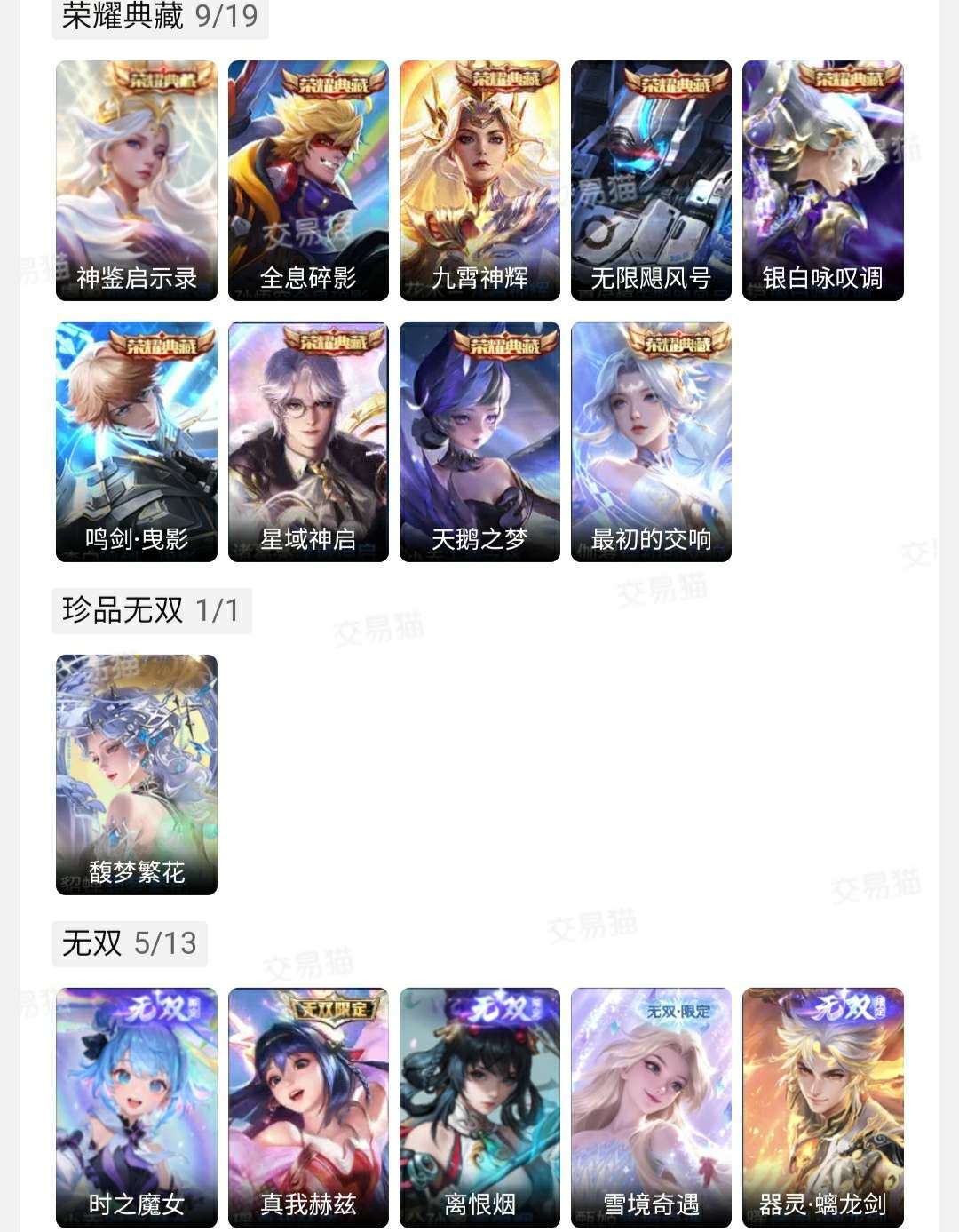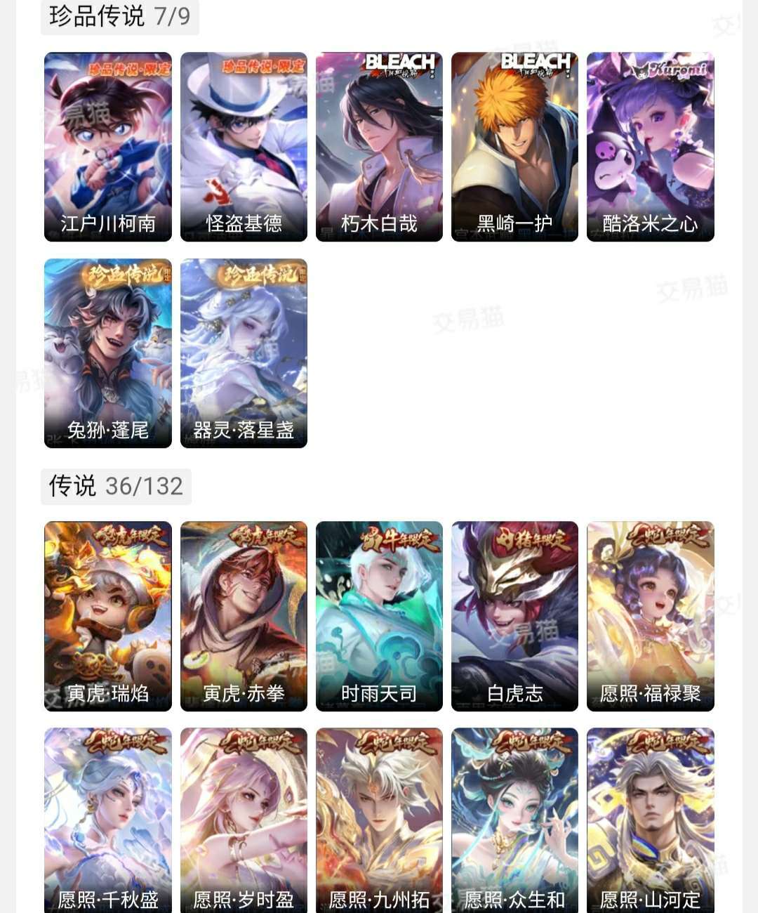 V10⚡国服⚡7珍品传说7珍品无双9典藏41传说5无双412皮⚡馥梦繁花⚡兔狲,器灵,柯南,怪盗基德