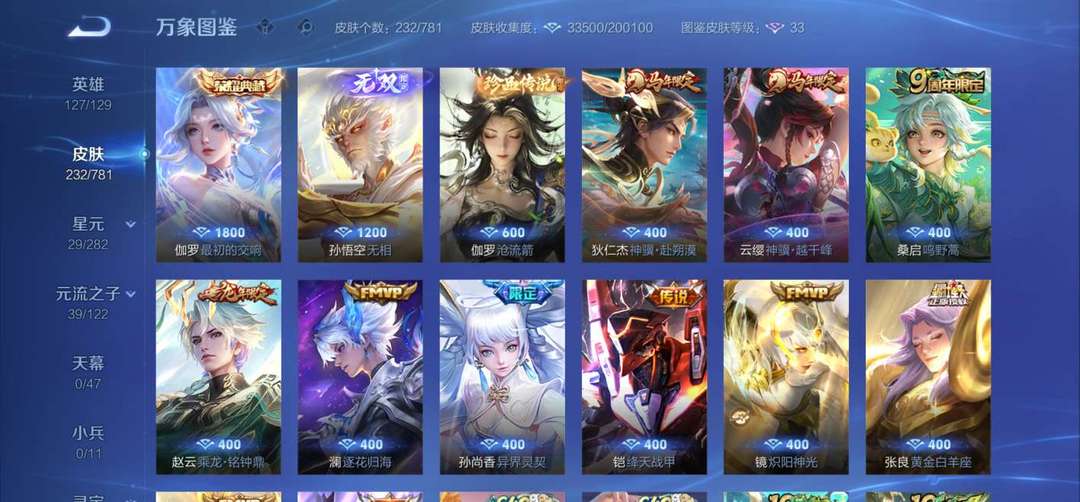 限制: 租号30次及以上 |装备描述:孙悟空无相 无相按键 无相播报 伽罗荣耀典藏 至尊宝 赵云宝马 张良传说 花木兰fmvp 狄仁杰马年限定 很多很多皮肤 无相刚充 伽罗无双沧海刚充全套 赵云龙年限定 澜逐花归海FMVP 孙尚香异界灵契 凯的译天战甲 镜的炽阳神光 貂蝉的金蝉 玄策白虎志