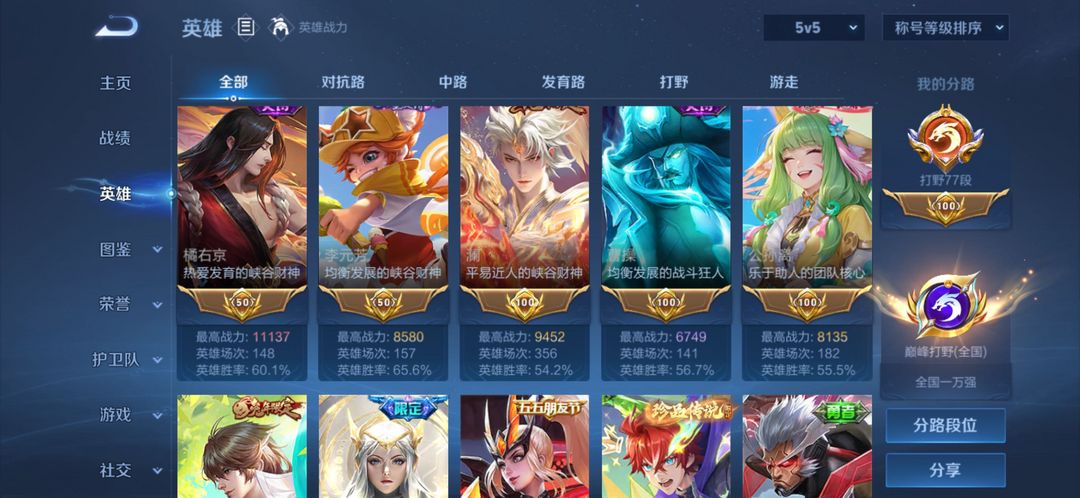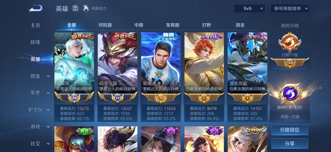 国服诸葛国服玄策,77段打野,28传说皮肤,最高2342分,野王带妹号,老虎全皮,玄策白虎志在榜省铠