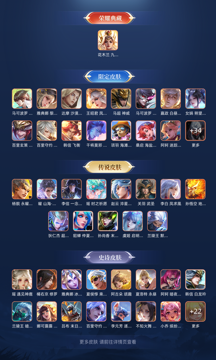诸葛无双皮/白虎志/李白王昭君鸡年限定/永曜之星/炽热神光/花木兰典藏 92⭐可排位可巅峰