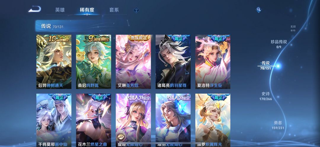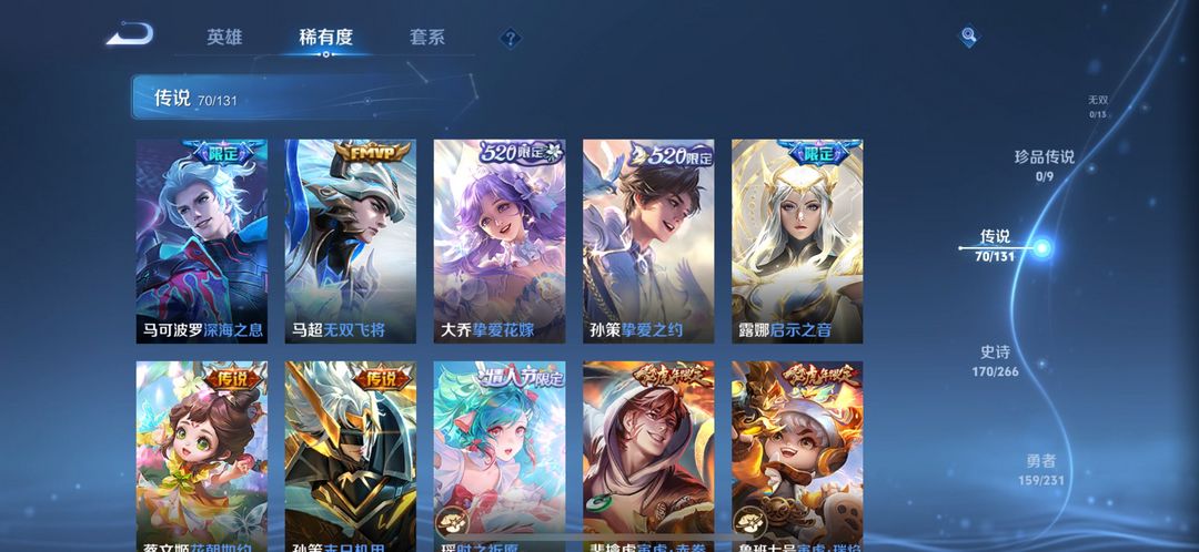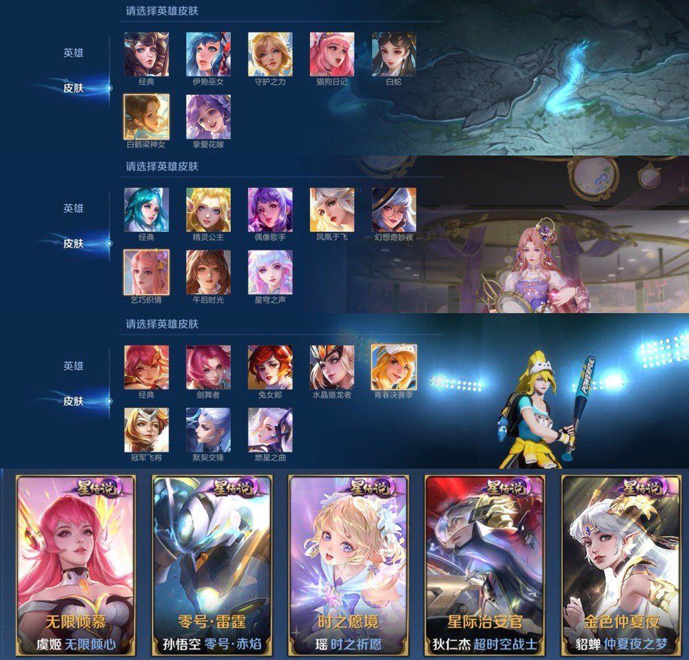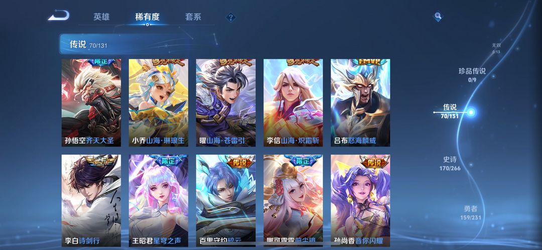 v10荣耀印记 492皮70传6水6星传(粉虞紫瑶零号星际金蝉蓝宫本)多个热门限定 五虎系列 大话西