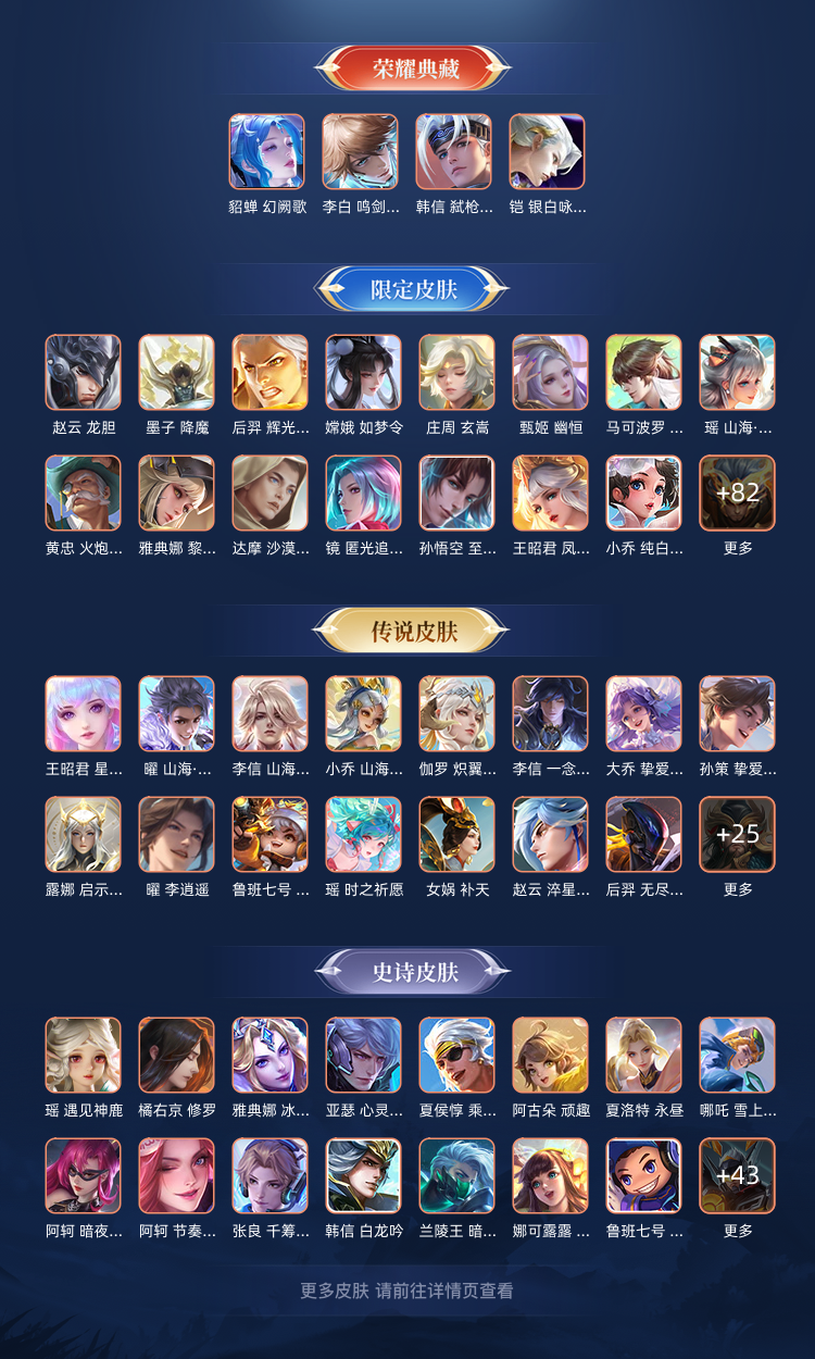 v10荣耀印记 省标标兰陵王多市标 483皮5水 3星传粉武幽冥蓝宫 61传多个热门皮肤 兔年虎年