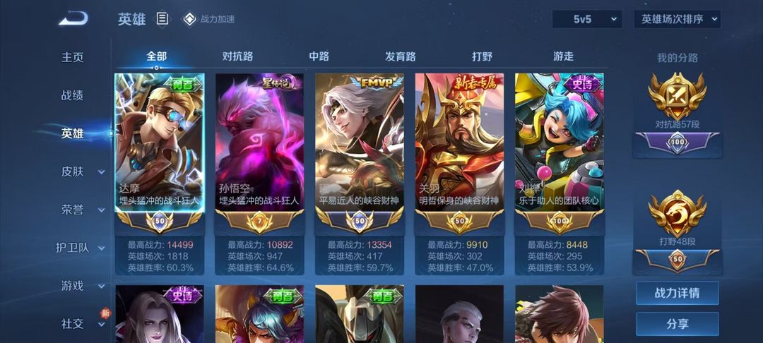 【国服.达摩.孙悟空.曜.刘邦】⚡57段对抗⚡48段打野⚡