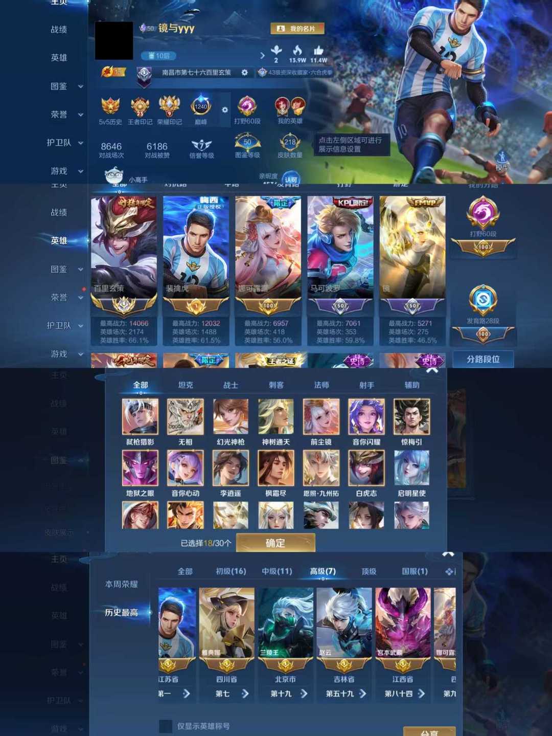1.4大国标玄策➕1.2省一梅西❤️60段省标打野♍老虎全皮♎韩信典藏⛎猴子无双♈白虎志♑小魔方亮
