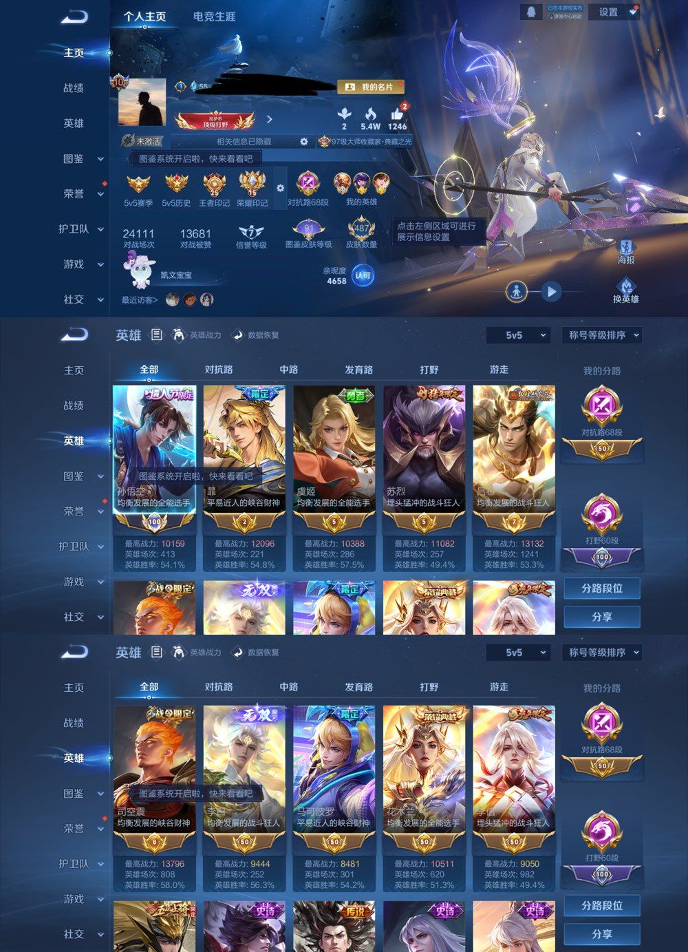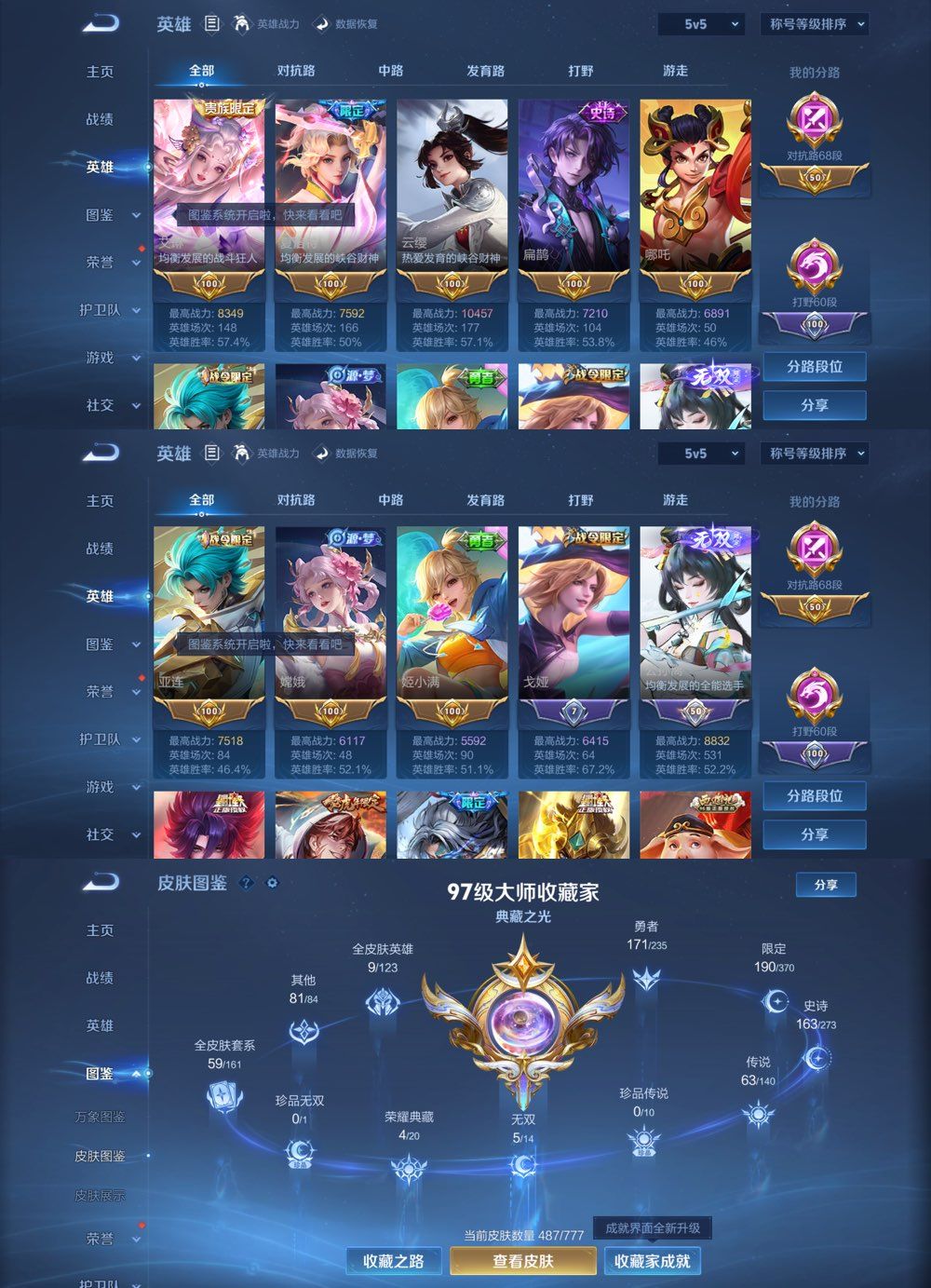 限制: 租号5次及以上 | 撤单率<50%才可租用此帐号装备描述:v10对抗68段 33省标小国至尊宝25市标 488皮5水(带小兵)5无双(火离乔白) 63传5星传 多皮公孙马 伪全皮李白 伪全皮嫦娥 伪全皮女娲 多热门限定皮肤