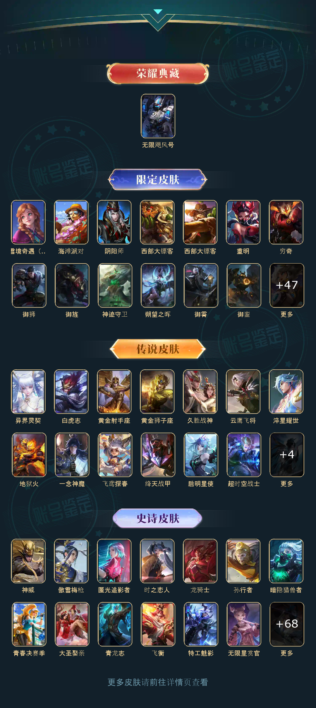 限制: 租号2次及以上 | 撤单率<70%才可租用此帐号装备描述:街头霸王王者之锤无限飓风号黄金狮子座大圣娶亲青龙志白虎志久胜战神飞衡梁祝匿光追影者孙行者异界灵契神威傲雪梅枪淬星耀世