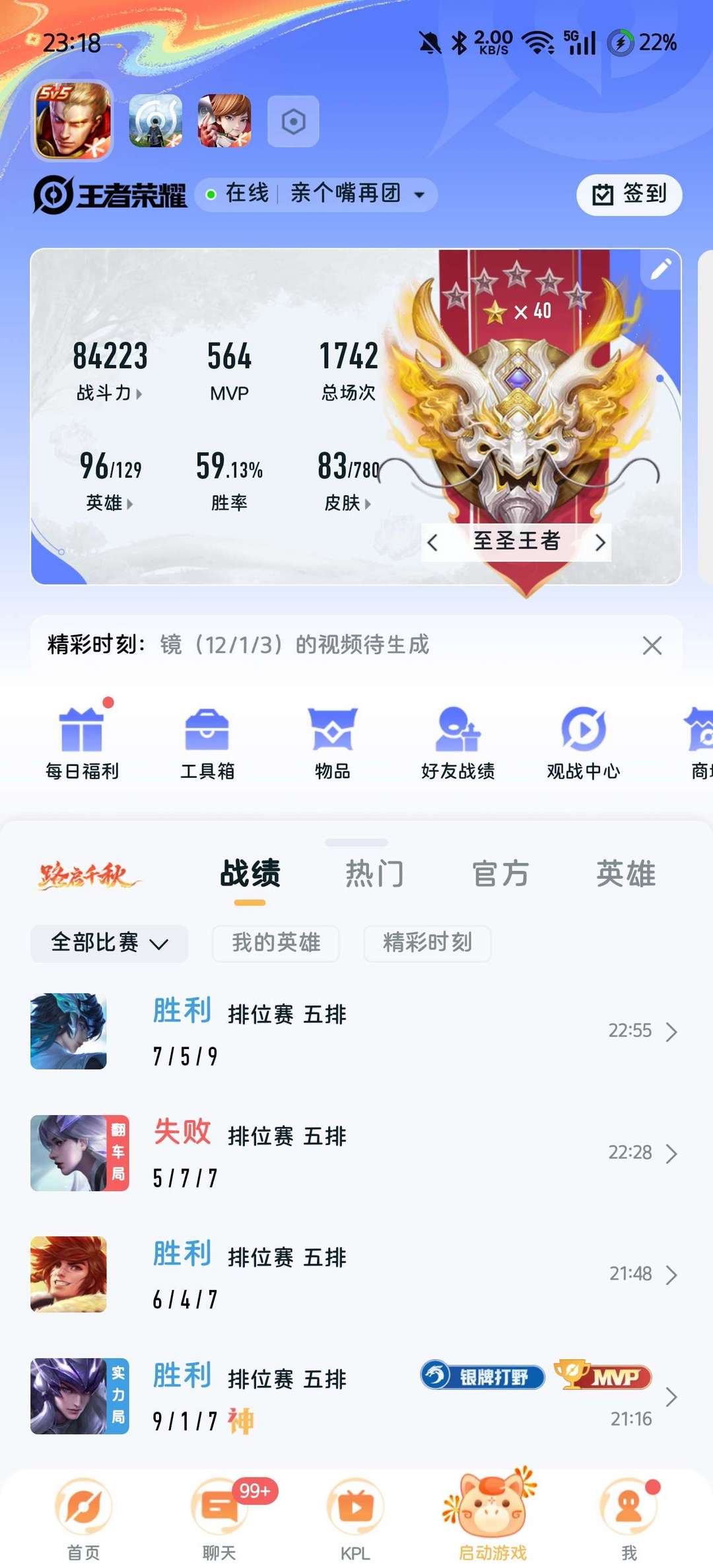 限制: 租号2次及以上 | 撤单率<80%才可租用此帐号装备描述:镜9943战力,现巅峰1718,排位绝世王者38星,可以打排位,可以打巅峰赛,禁止恶意挂机,恶意发表言论,违者必究!!!按键可以换一个布局方案调,账号优质,欢迎来玩