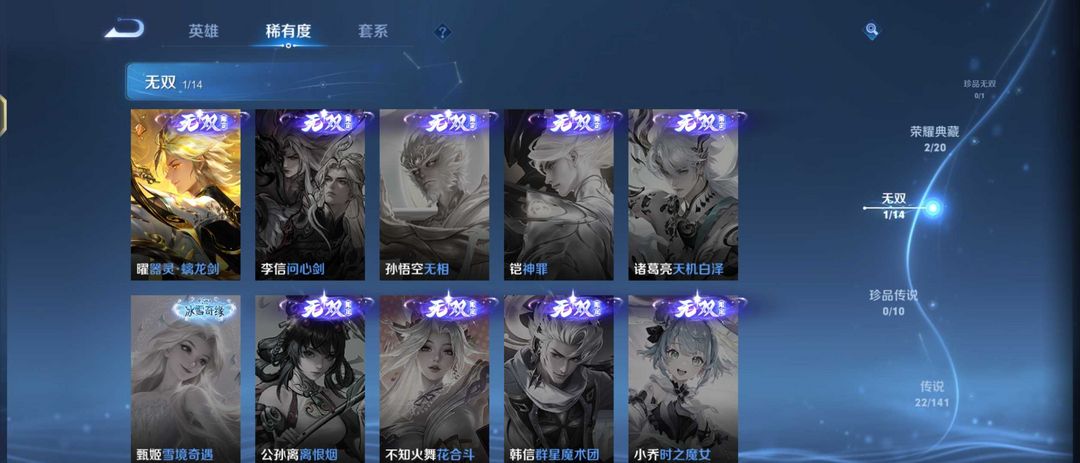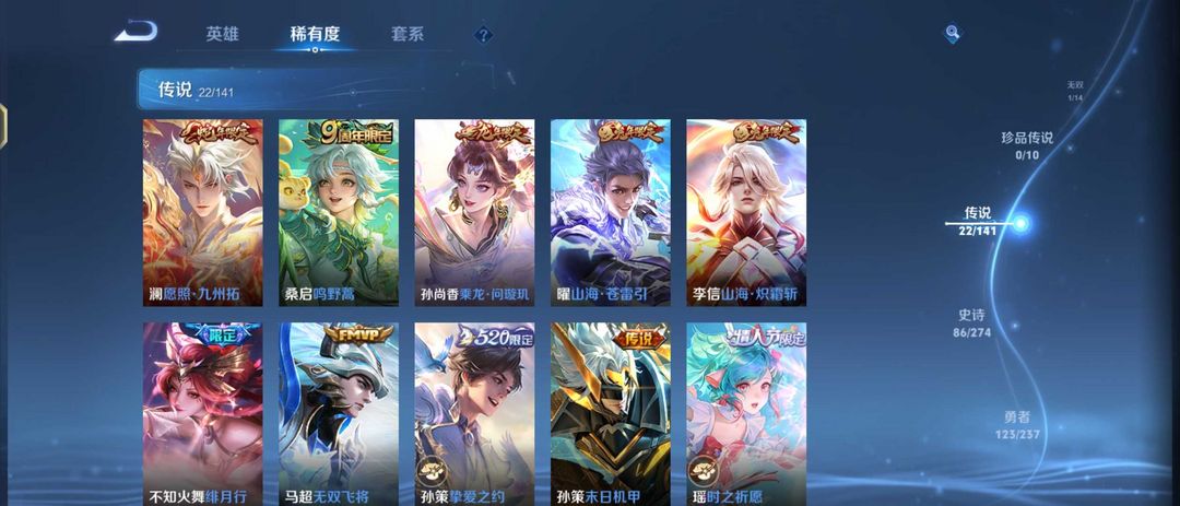 4典藏48传说1无双7星元满限定V9.虞姬李白典藏曜九州拓乘龙桑野鸣