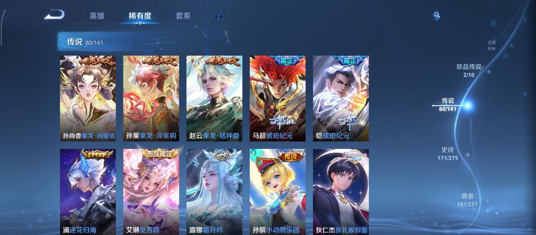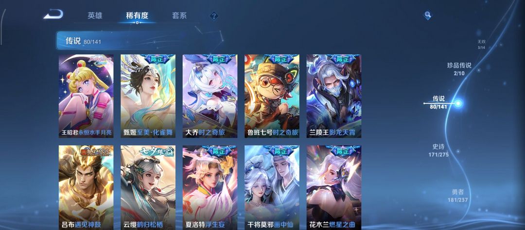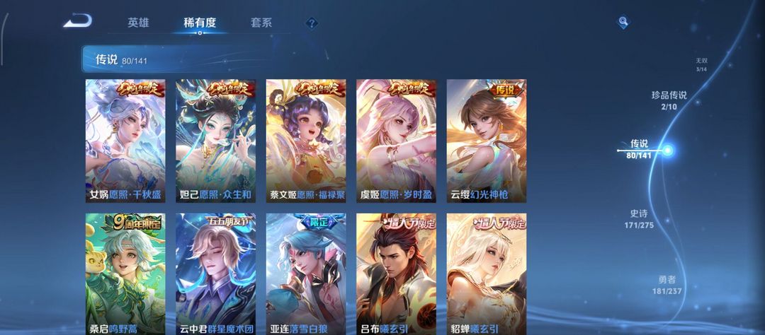 v10历史荣耀 2省标522皮6水3无双(耀小乔武则天)4星元黑孔雀粉虞星际未来 珍品嫦娥孙策80传