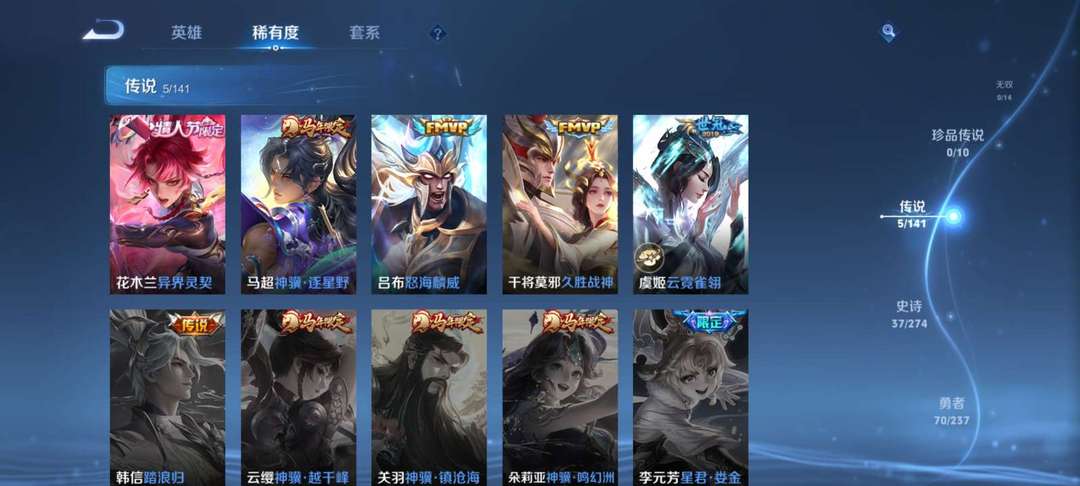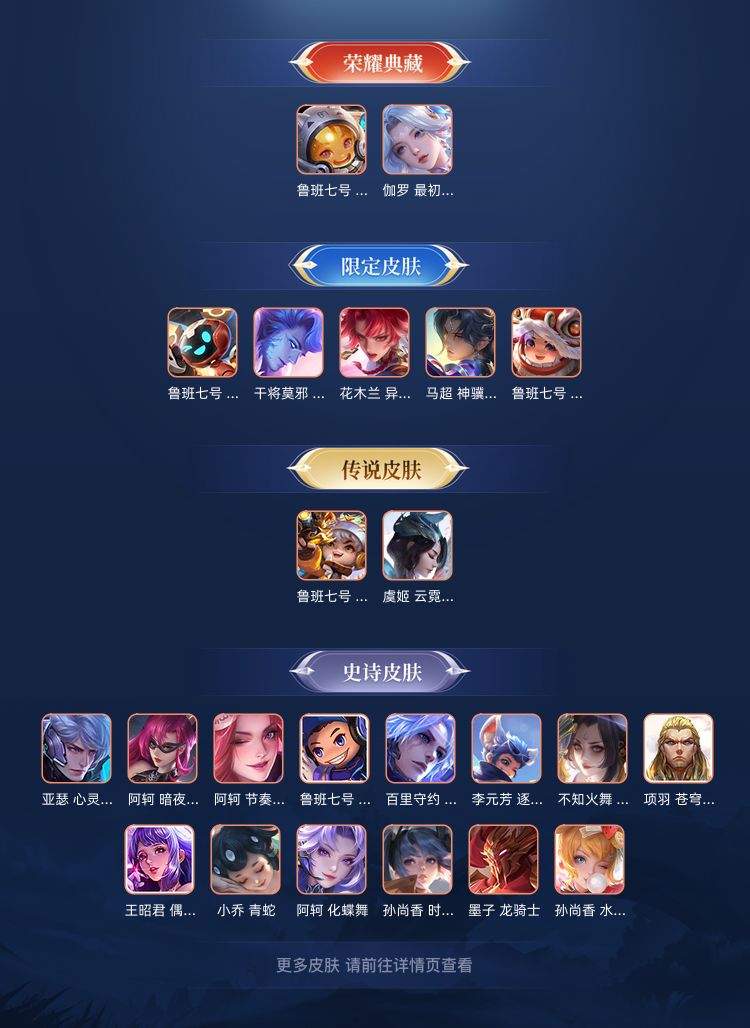 伽罗荣耀典藏 马超马年限定 花木兰情人节限定 干将FMVP...等