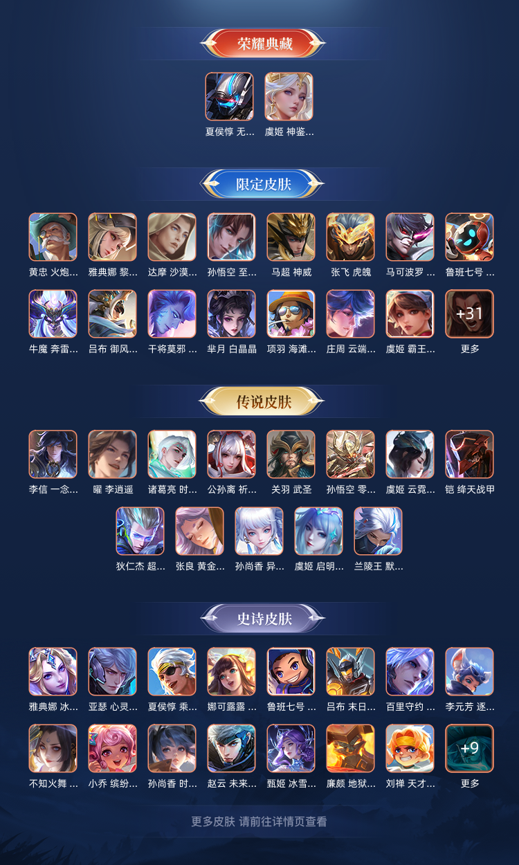v8满铭文,两典藏(虞姬夏侯惇),17传说(李逍遥零号),74史诗(至尊宝白晶晶)
