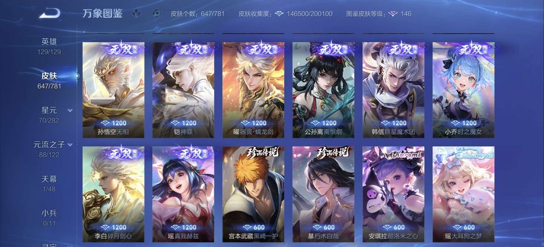 (V10.647皮)13典藏,7无双,凯和孙悟空新无双,武则天荣耀典藏,带妹带兄弟首选!