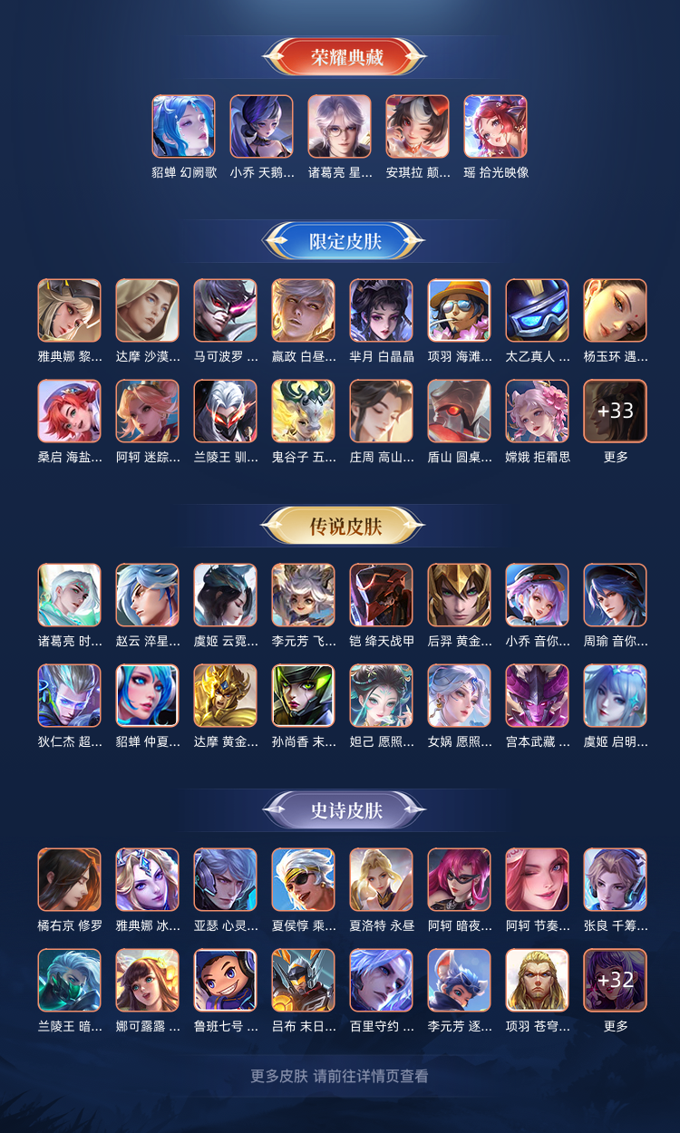 V9/423皮/甄姬公孙离无双瑶貂蝉小乔诸葛安琪拉典藏嫦娥珍传/38传说4星传小兵皮马年天幕局内灵宝