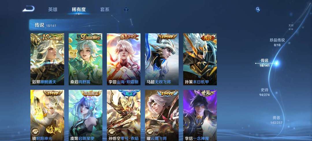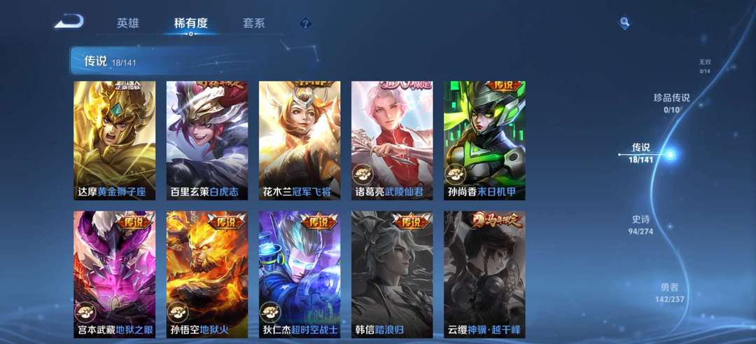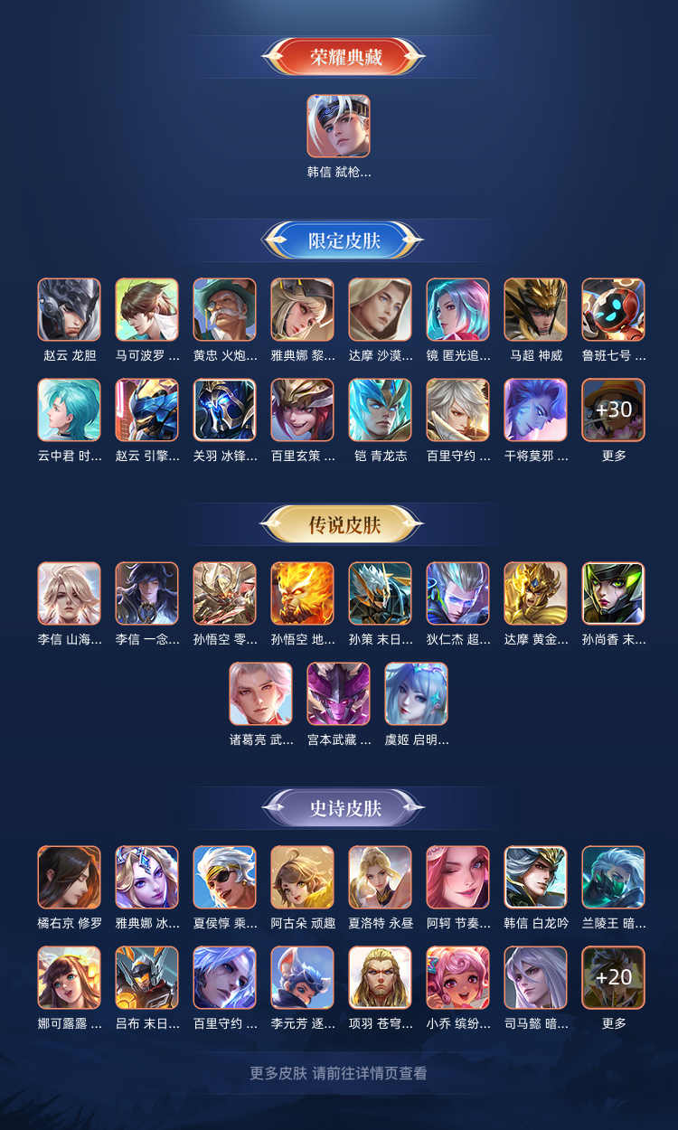 韩信典藏,王者15星,满铭文,3款星元皮,18款传说皮