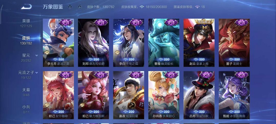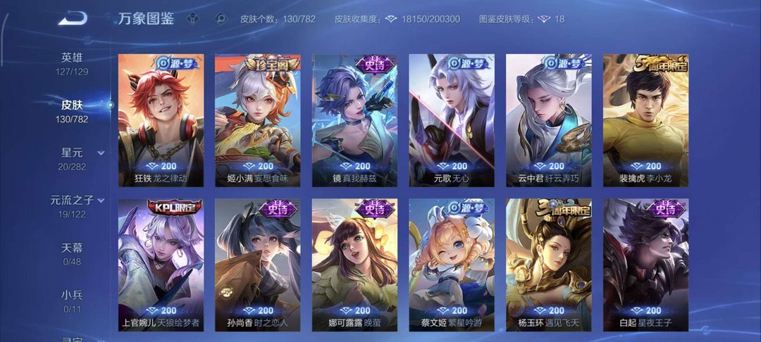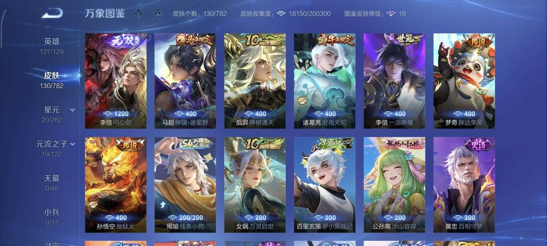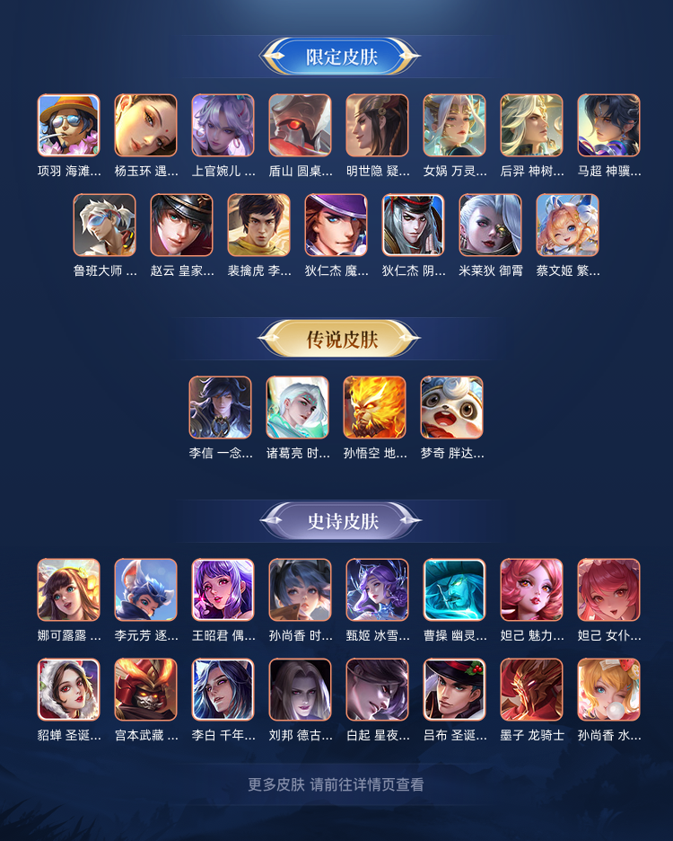 李信无双问心剑一念神魔.诸葛亮时雨天司.孙悟空地狱火.马超年限.娜可露露晚萤.上官婉儿天狼绘梦者.