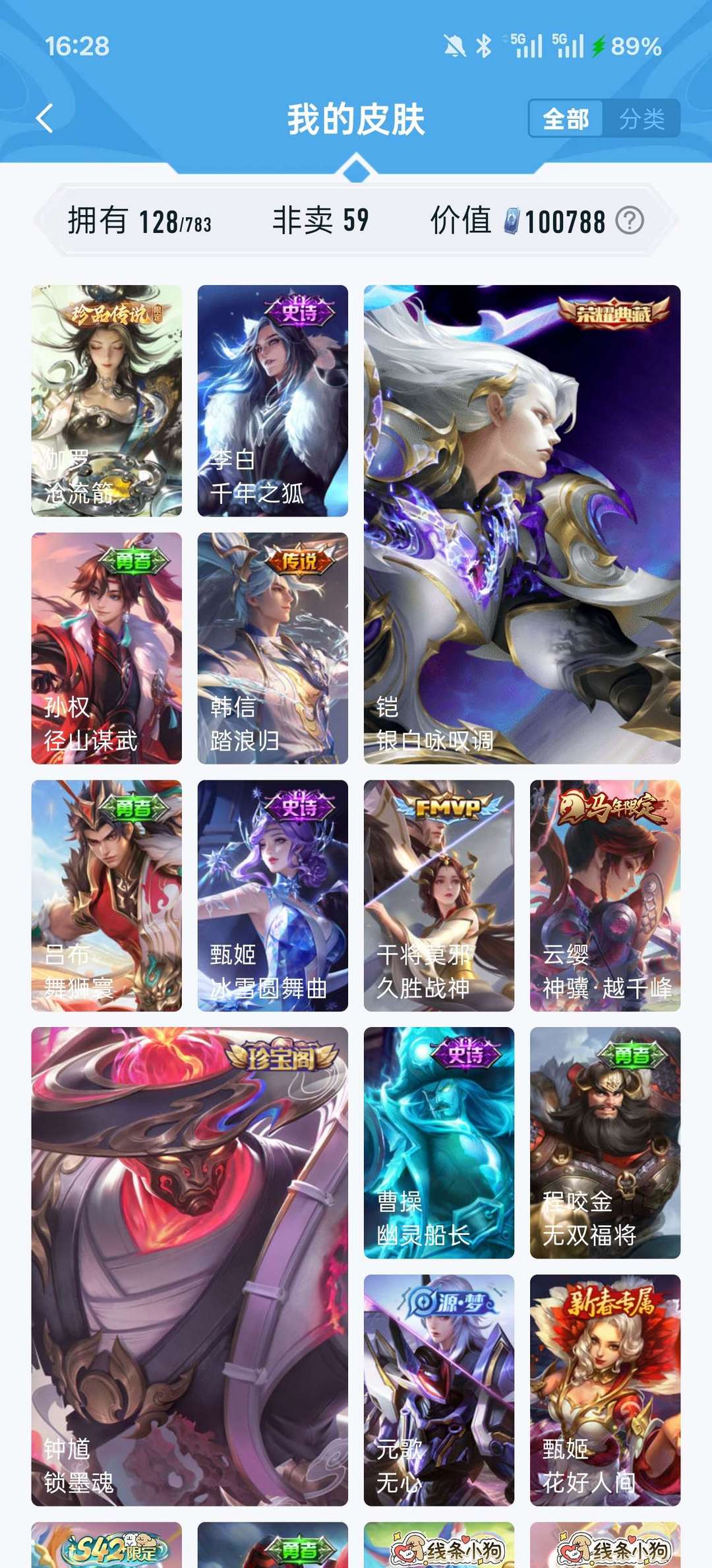 一典藏银白咏叹调,一珍传沧流箭,云缨马限,韩信新传说,至尊宝,幽冥火,武陵时雨,虞姬蛇限,朱雀,神威