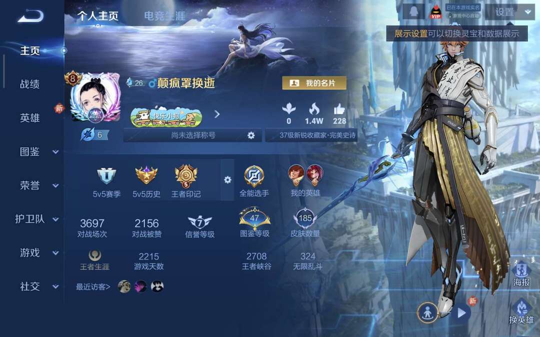 王者安卓区V8号|李白鸣剑曳影典藏|18传说65限定|全英雄185皮|排位娱乐可玩
