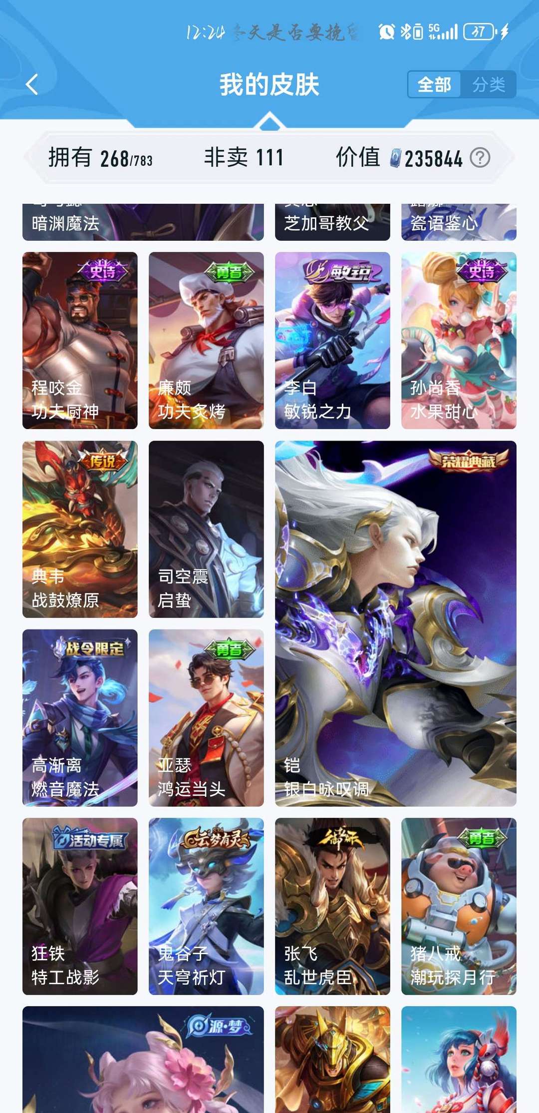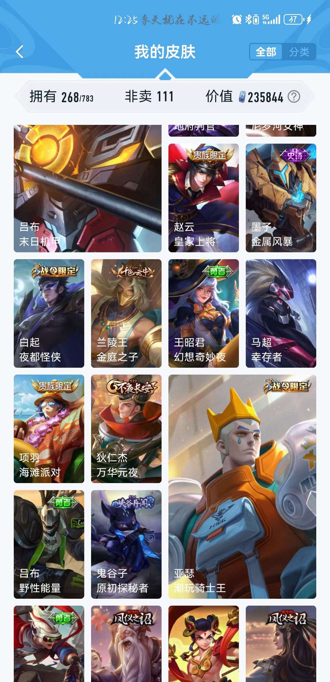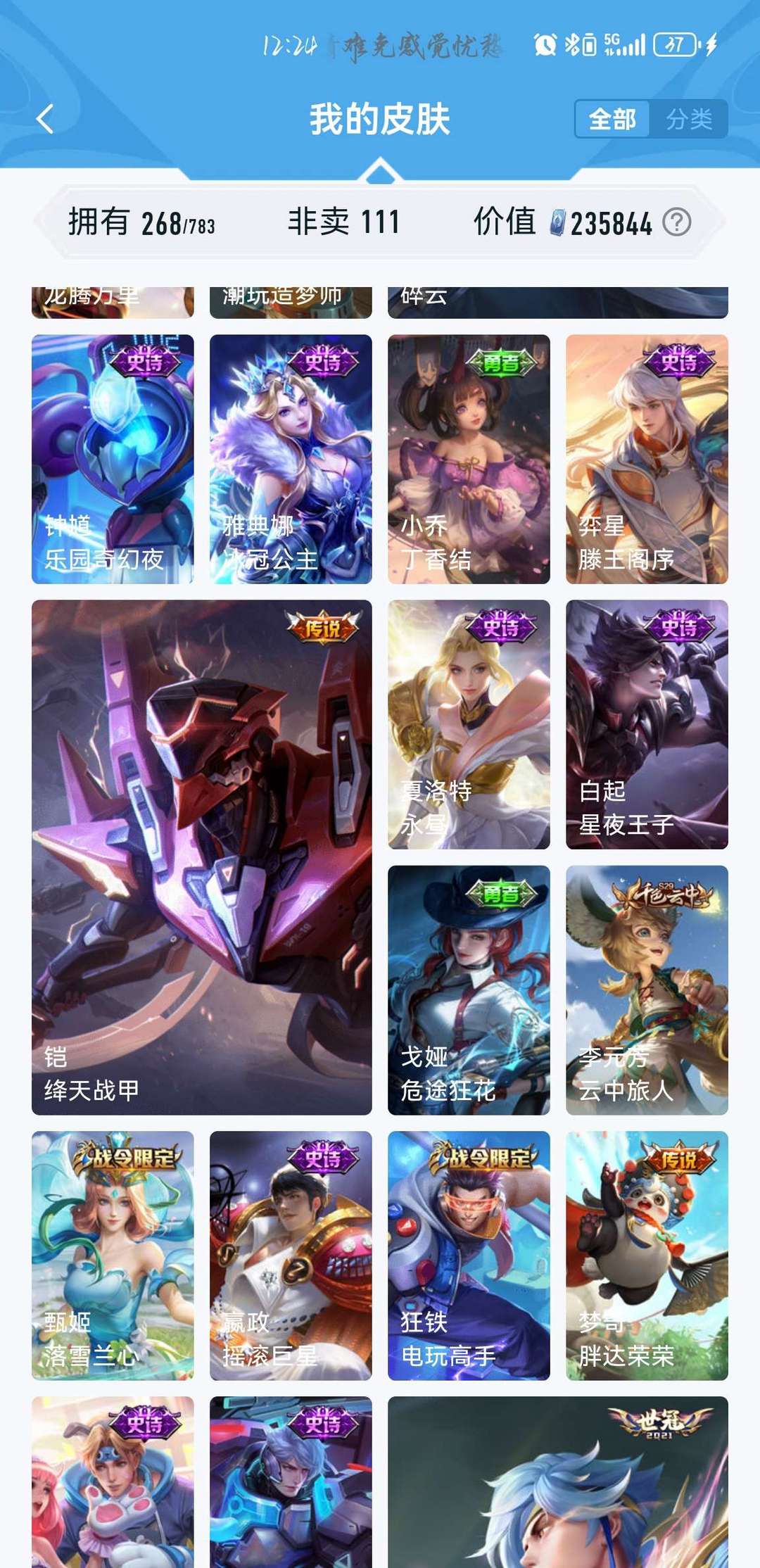 装备描述:皮肤截图在下边 挺久没玩了应该出了两个英雄可以自行购买金币一定够