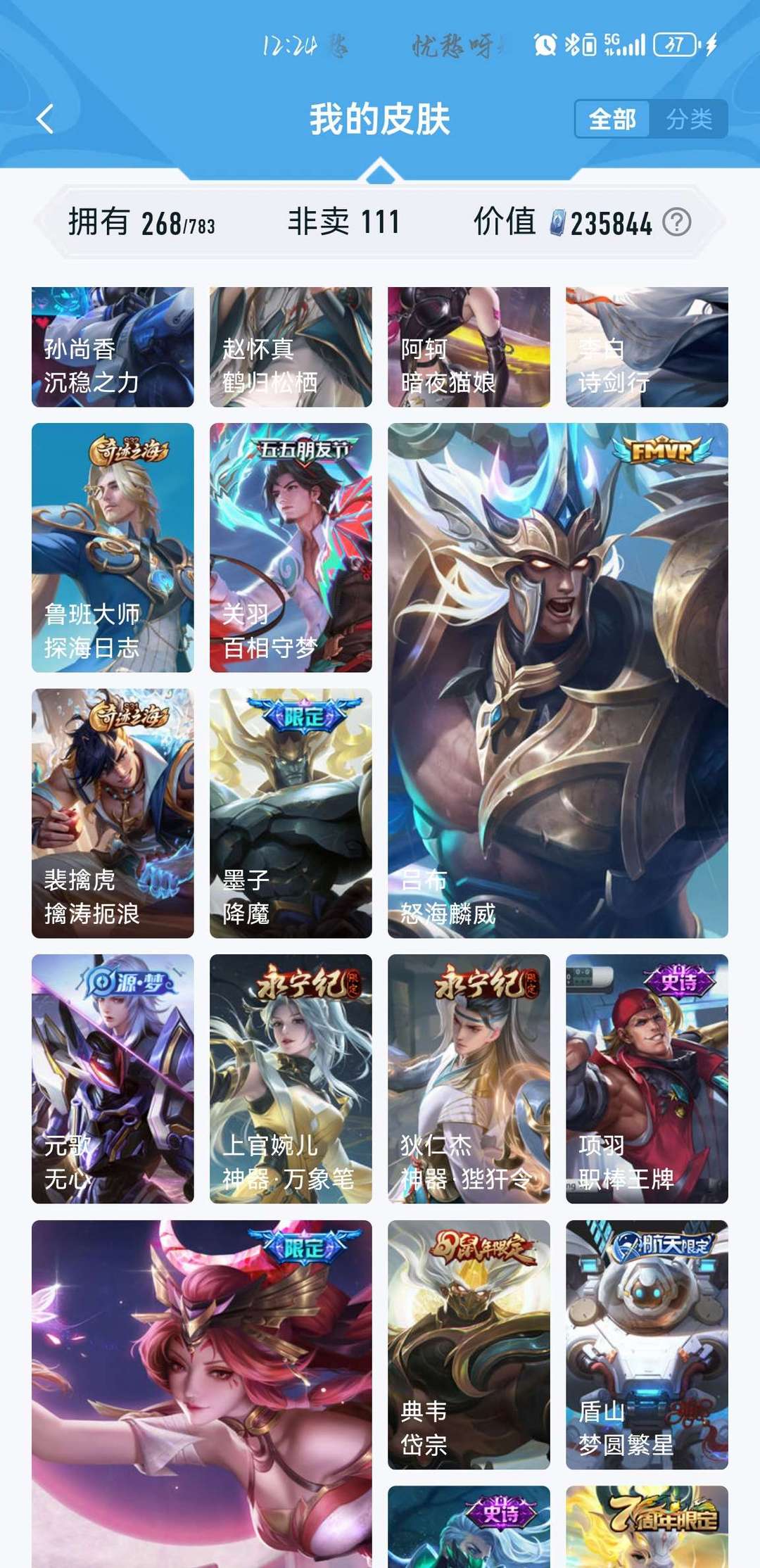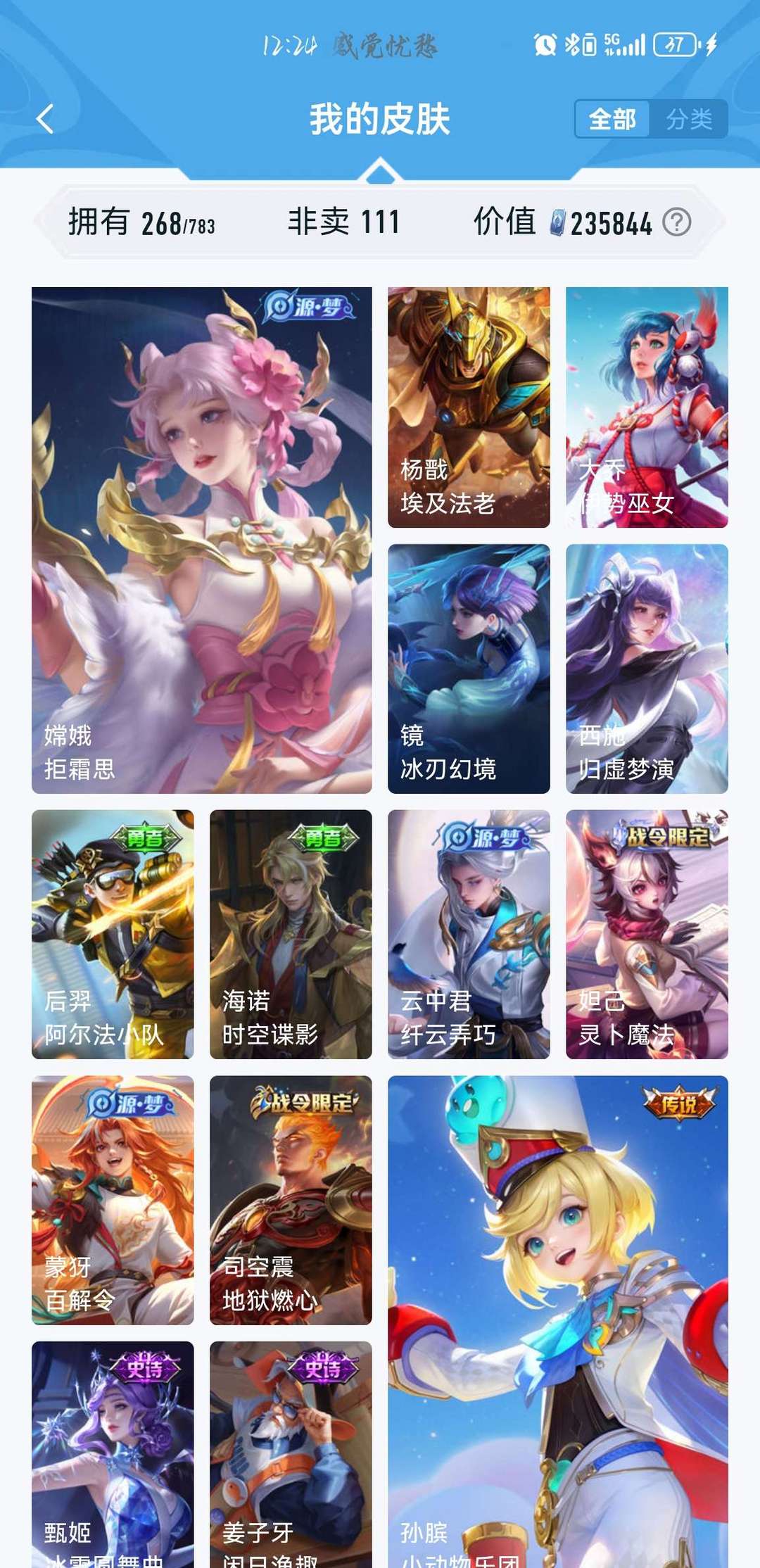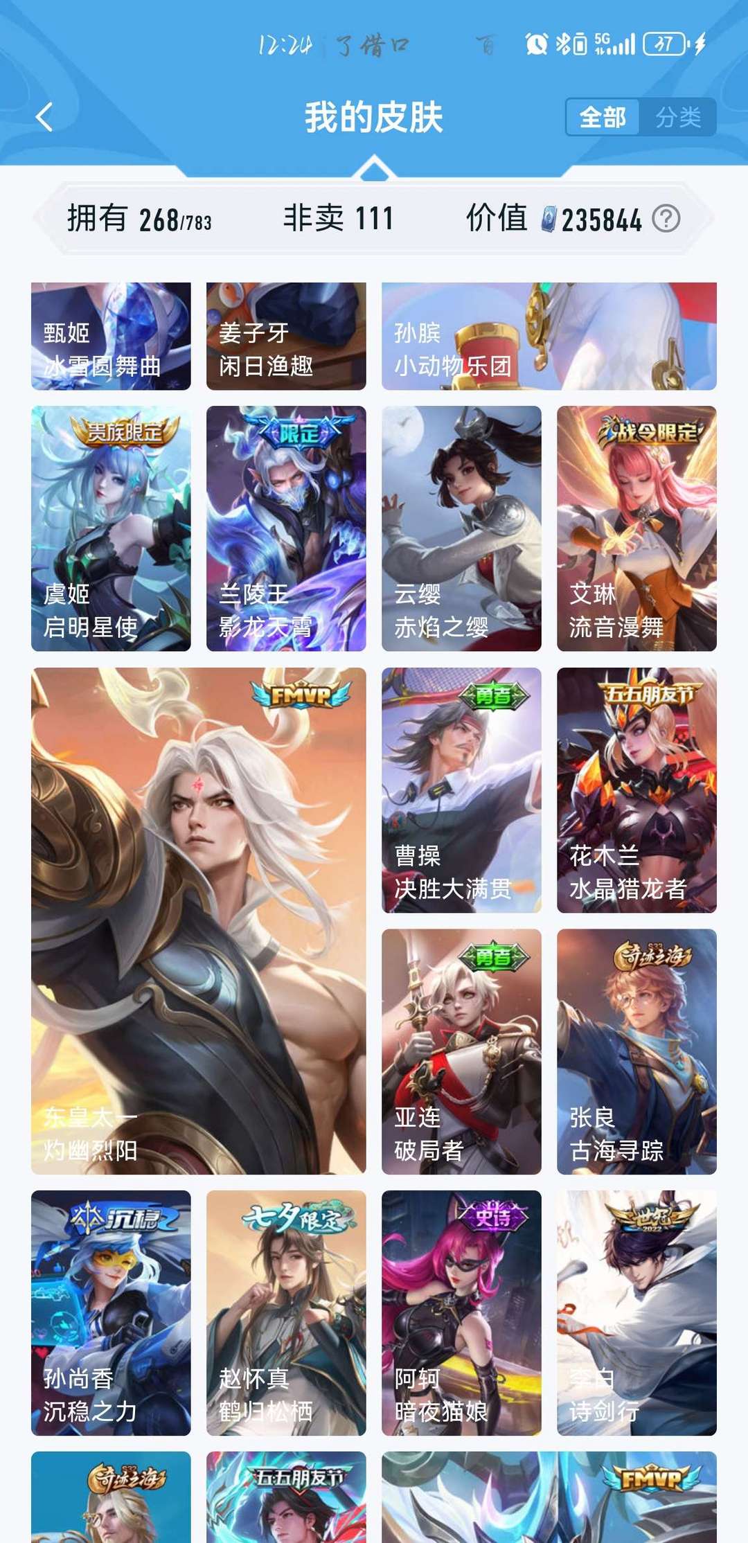 装备描述:皮肤截图在下边 挺久没玩了应该出了两个英雄可以自行购买金币一定够