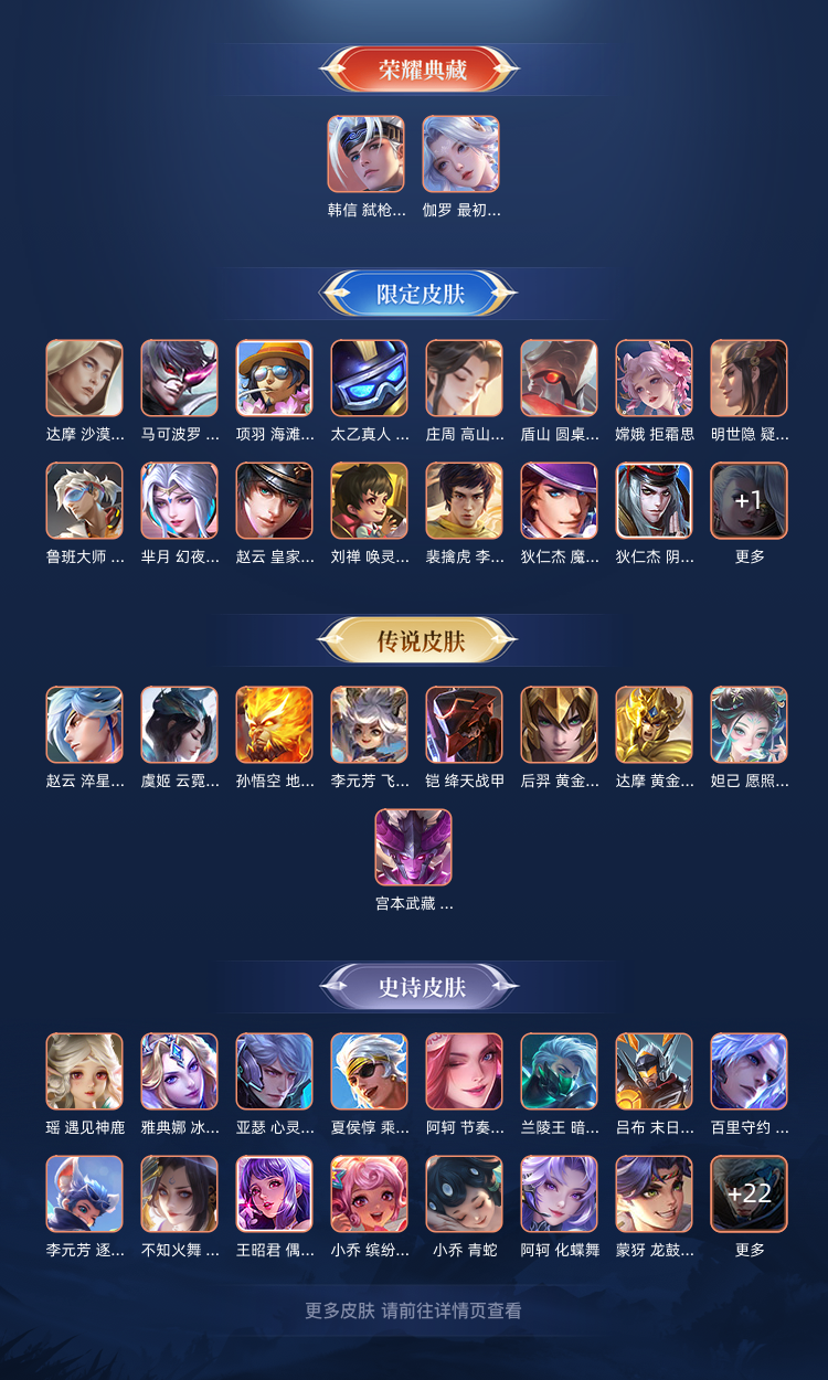 2荣耀典藏,1无双,2珍品传说,17传说,1个极其稀有皮肤亚瑟-狮心王