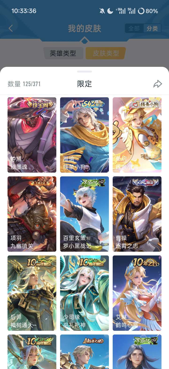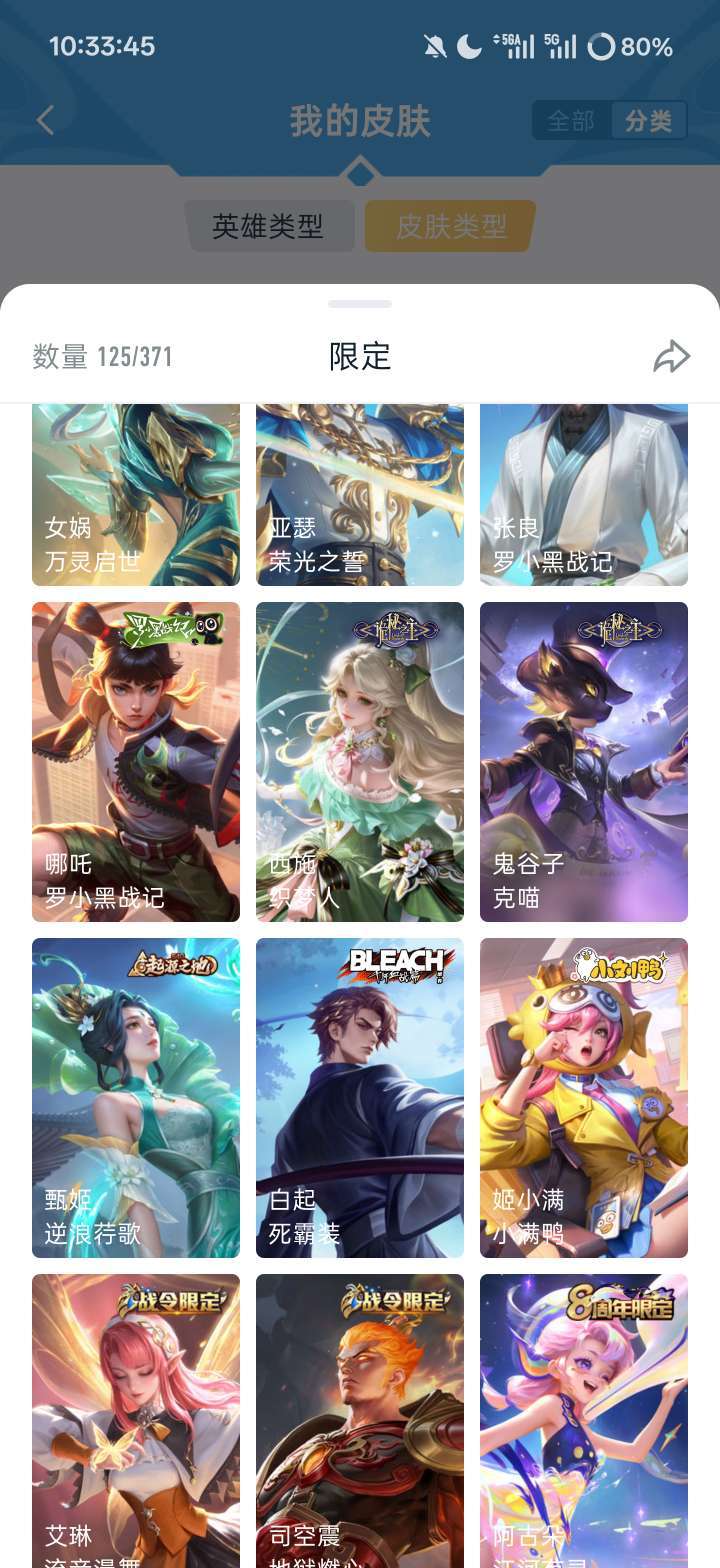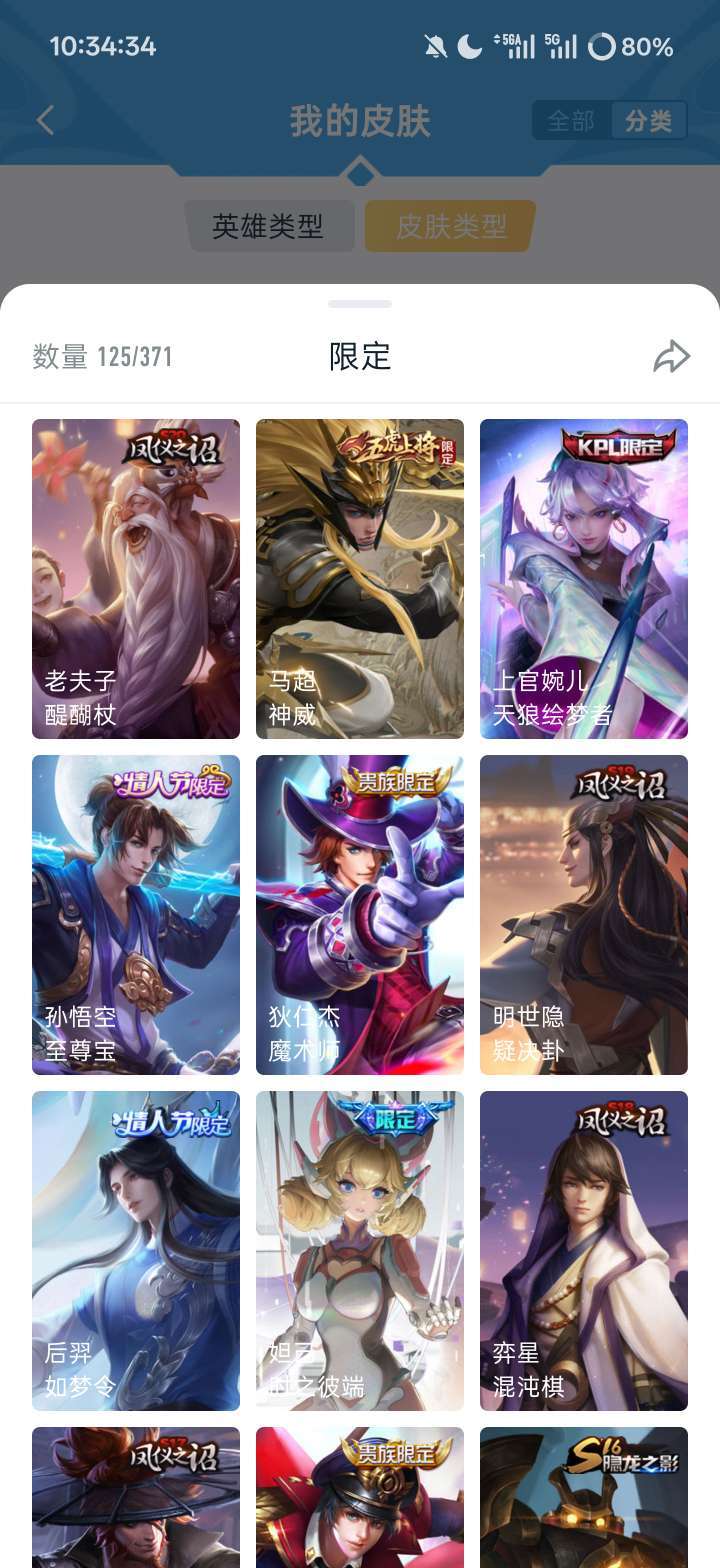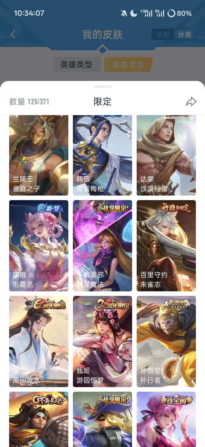 V8,356皮肤,1典藏/瑶的大耳狗/无双飞将/至尊宝/白虎志/地狱火/幽冥之眼等