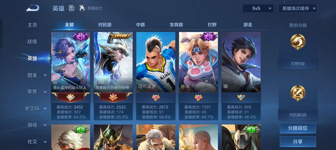 高胜率野王账号:镜马超双C,7传说皮肤加持