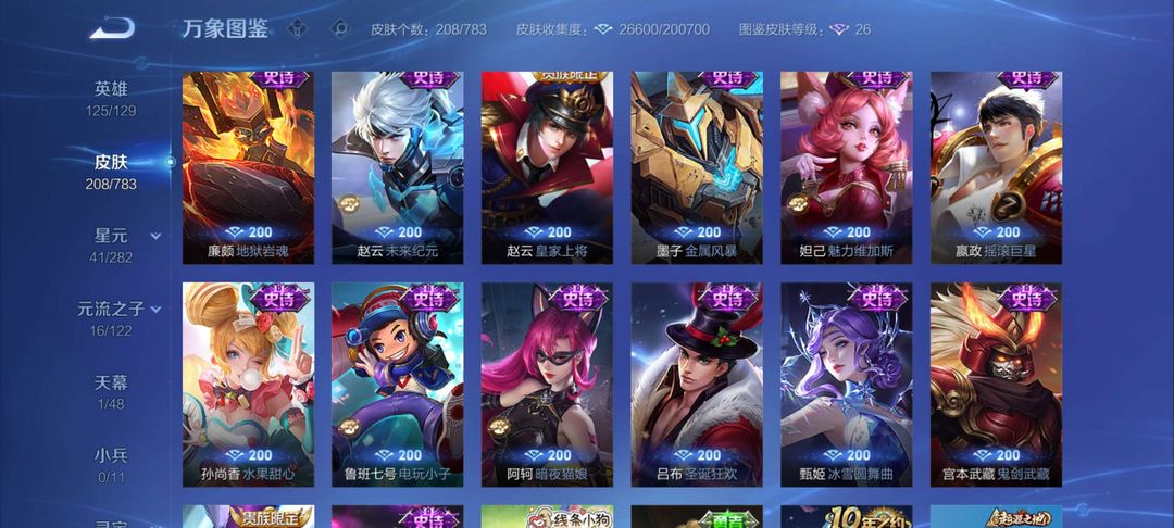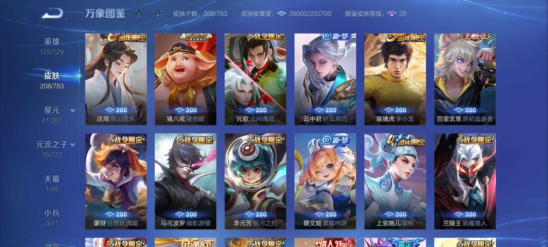 星耀二,一典藏伽罗的,宫本传说,诸葛亮限定。自己看图还有就不截图了。