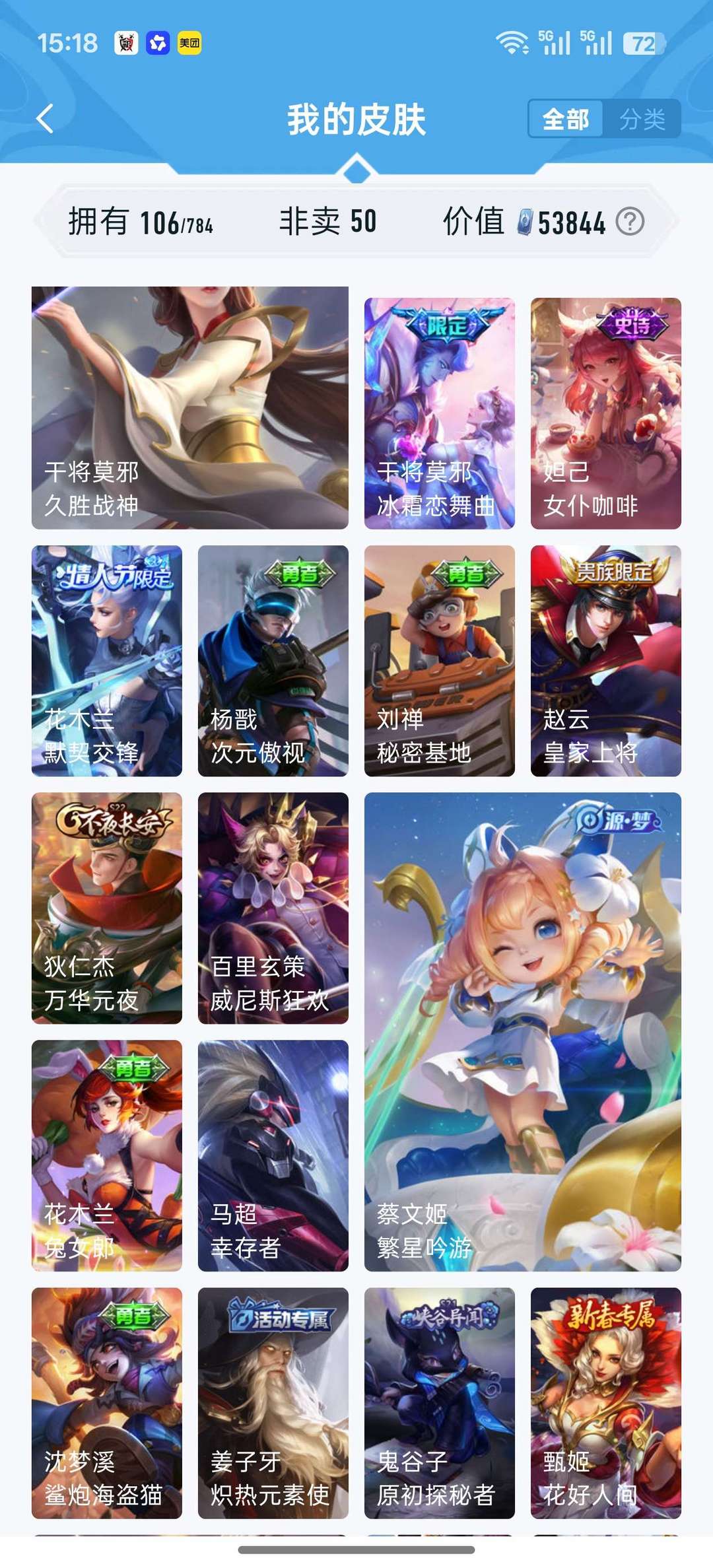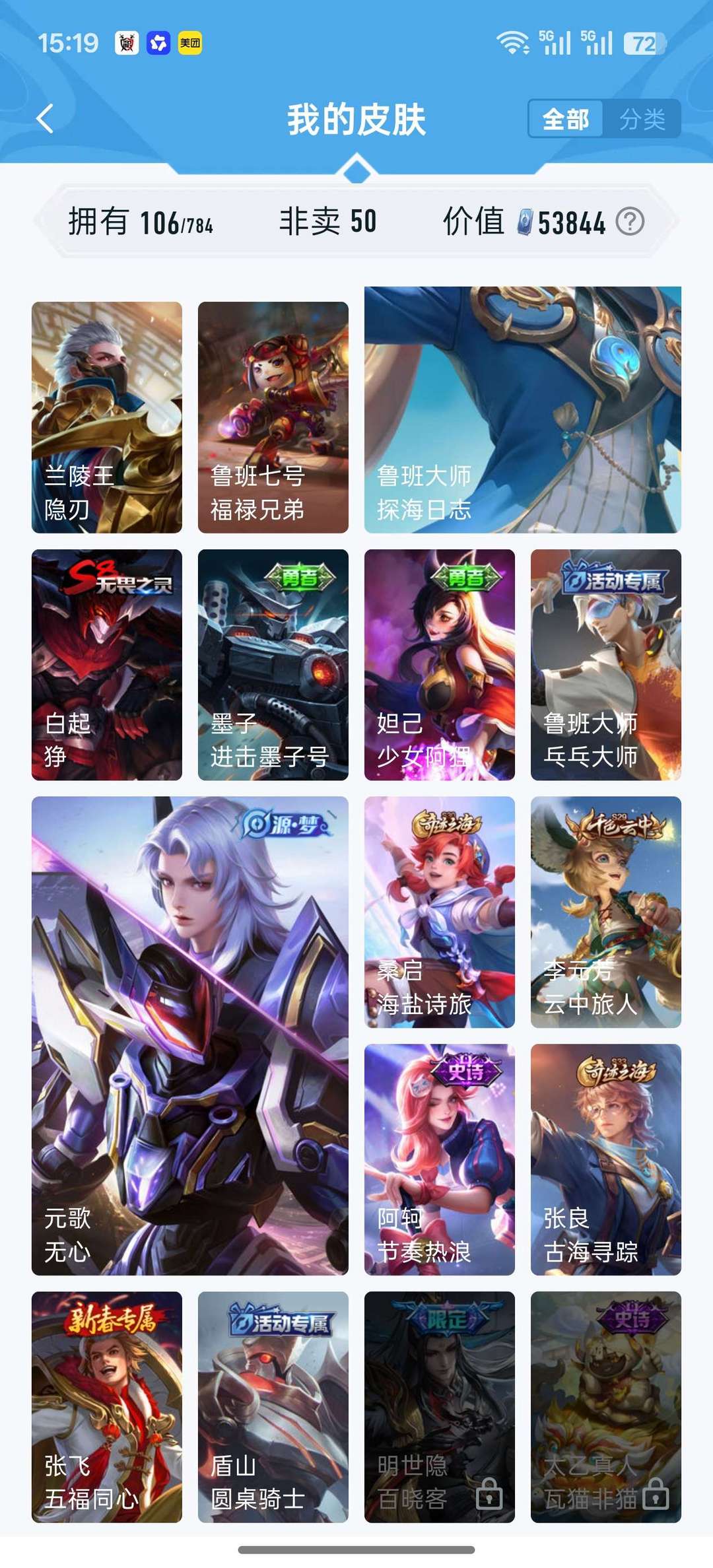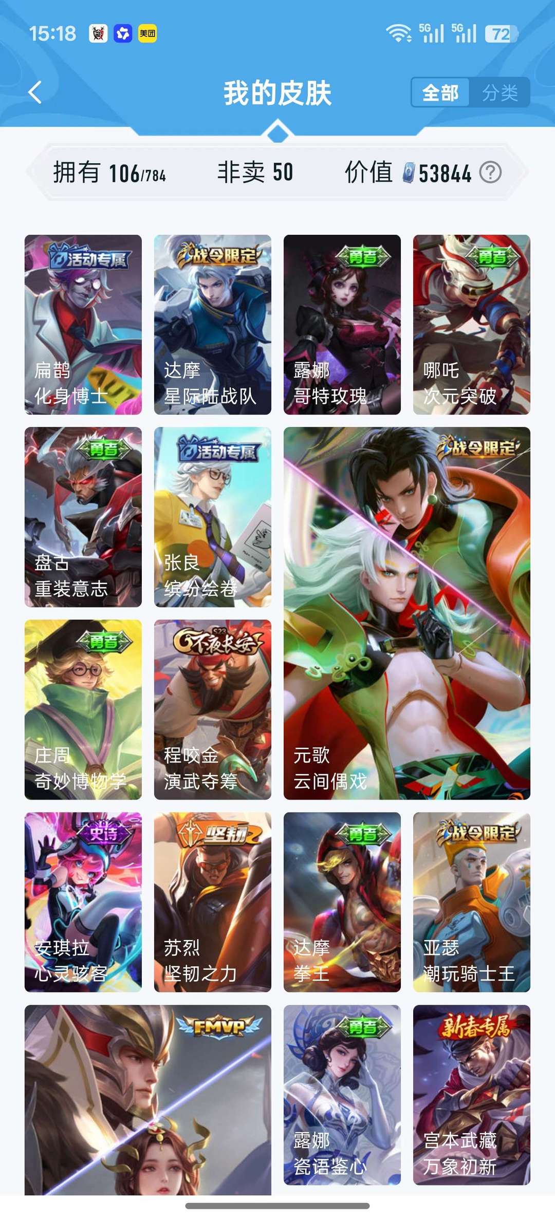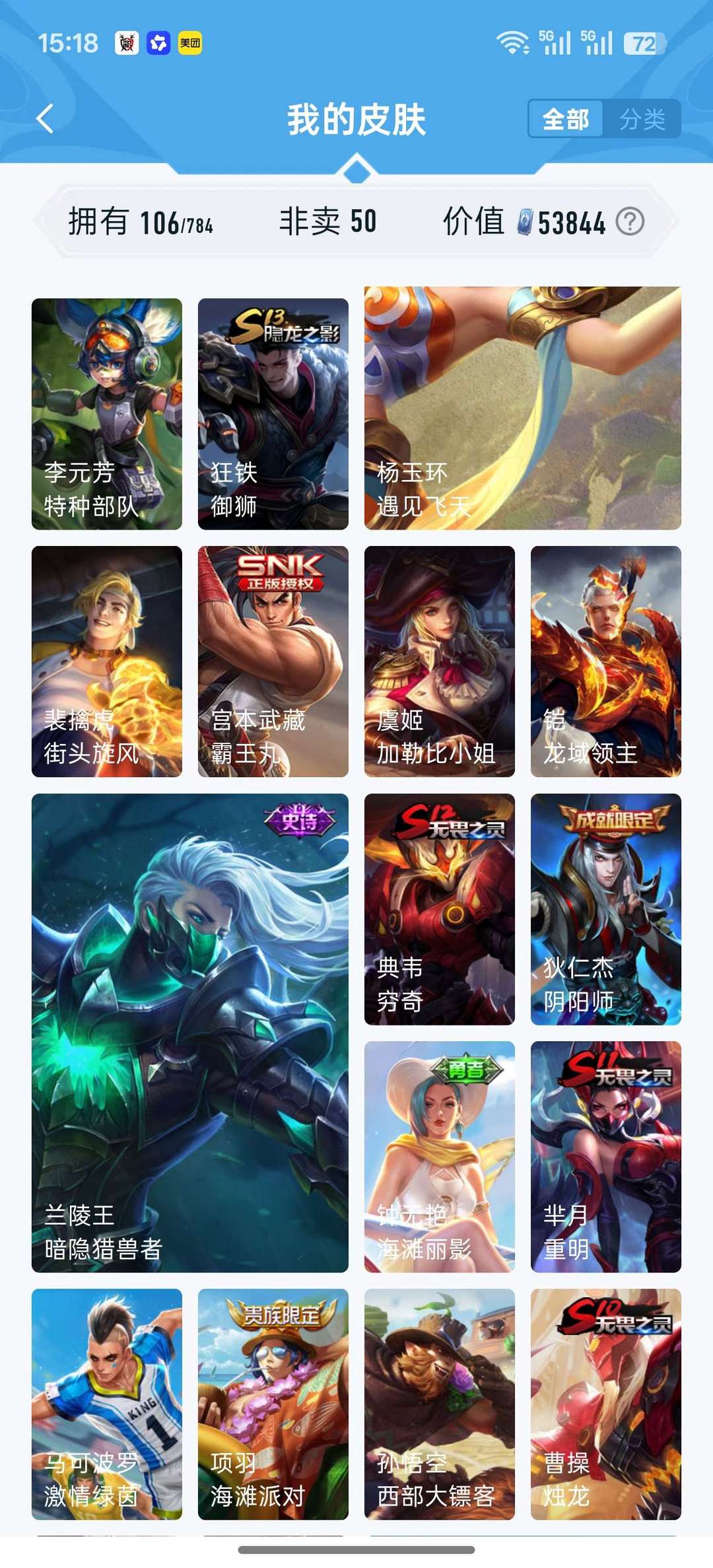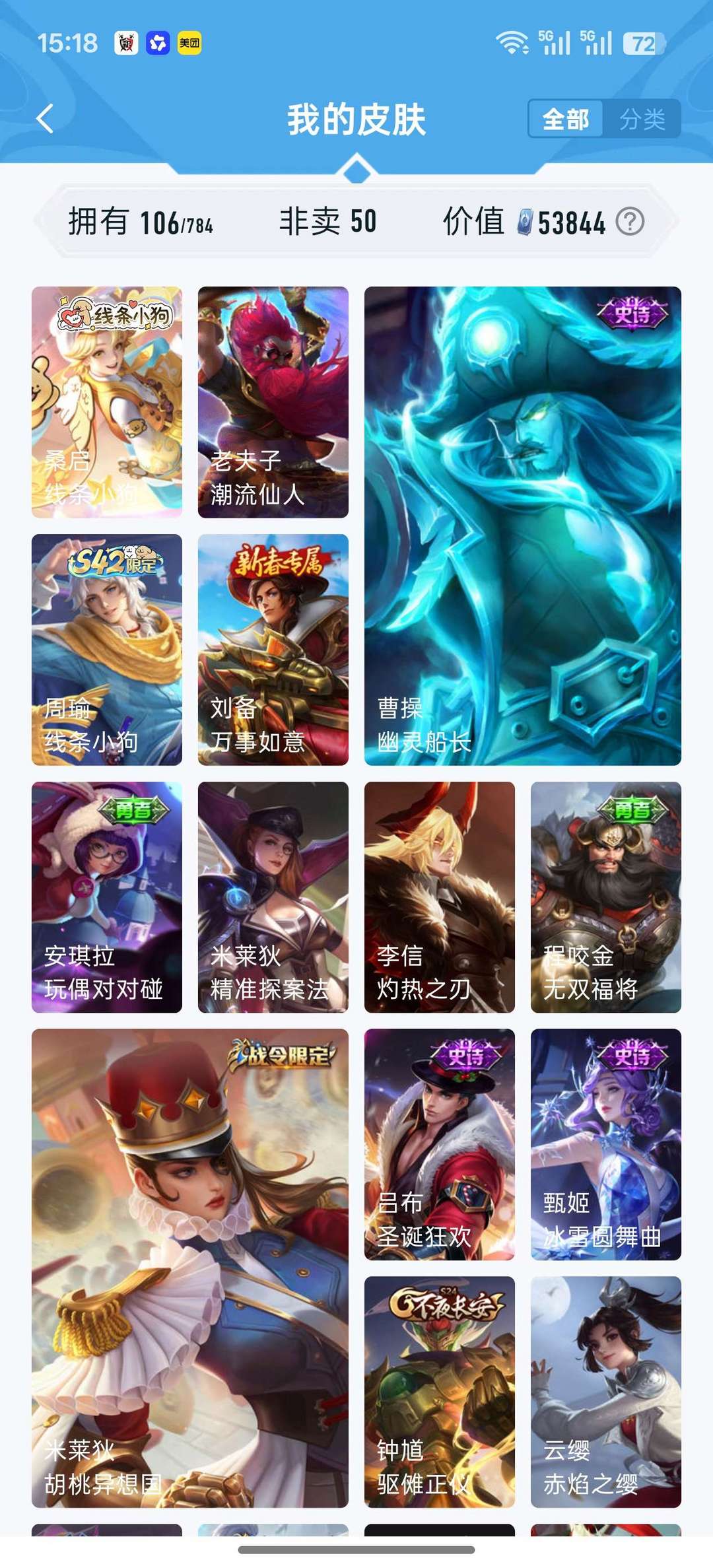 【106皮 高性价比】久胜战神 冰霜恋舞曲 默契交锋 暗隐猎兽者 幽灵船长 节奏热浪 等等