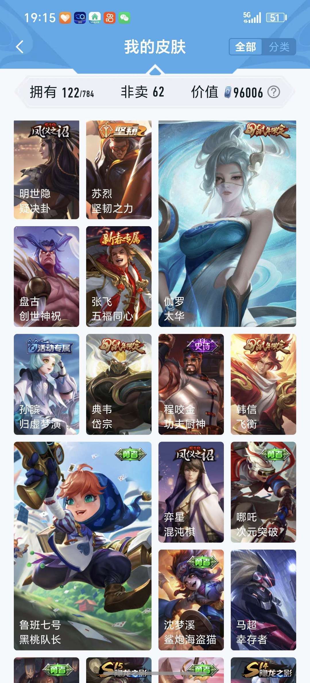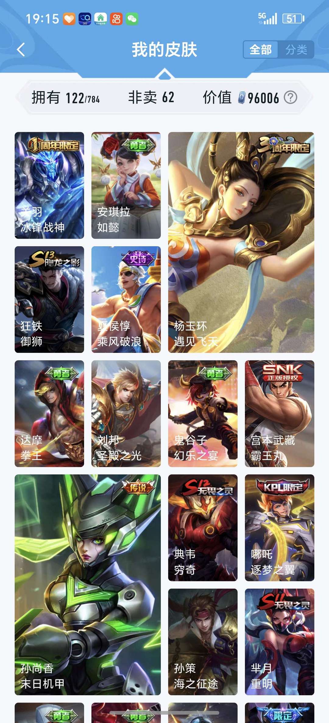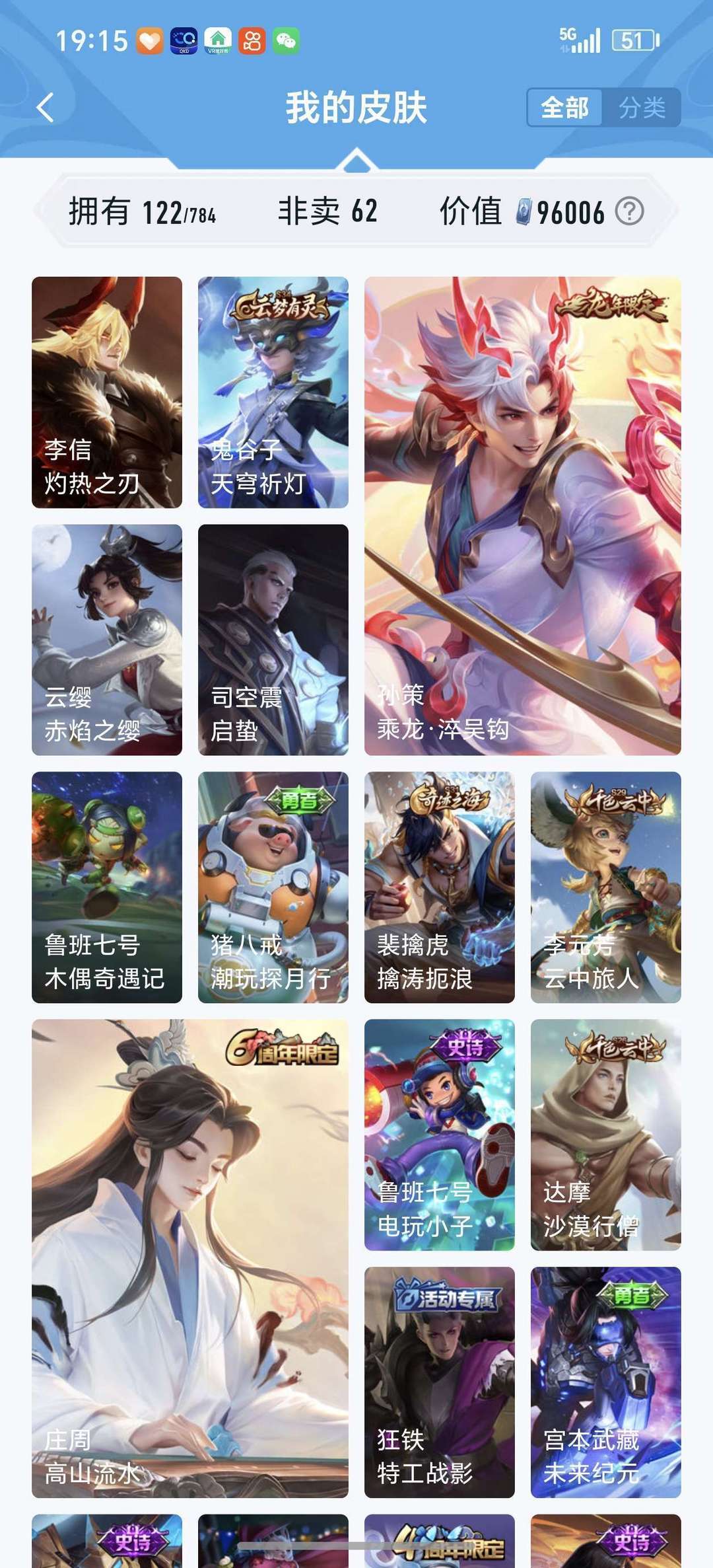 各种模式可玩,皮肤共计122个,限定皮肤48个,生肖限定5个,传说品质7个,荣耀典藏1个登