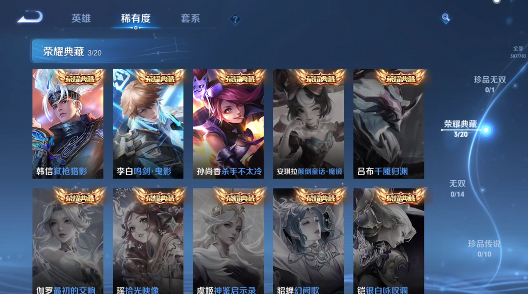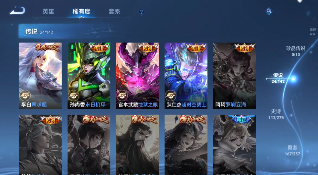 装备描述:英雄:马可波罗(马可波罗 深海之息,马可波罗 山海·玄木吟,马可波罗 潮玩牛仔,马可波罗 暗影游猎,马可波罗 逐梦之星,马可波罗 激情绿茵);澜(澜 逐花归海,澜 赏金猎手,澜 孤猎);李信(李信 山海·炽霜斩,李信 一念神魔,李信 灼热之刃);韩信(韩信 弑枪猎影,韩信 傲雪梅枪,韩信 白龙吟,韩信 街头霸王,韩信 逐梦之影,韩信 教廷特使);孙悟空(孙悟空 孙行者,孙悟空 至尊宝,孙悟空 美猴王,孙悟空 西部大镖客);孙尚香(孙尚香 音你闪耀,孙尚香 杀手不太冷,孙尚香 异界灵契,孙尚香 时之恋人,孙尚香 水果甜心,孙尚香 沉稳之力,孙尚香 末日机甲);鲁班七号(鲁班七号 蔬乡物语,鲁班七号 福禄兄弟,鲁班七号 木偶奇遇记,鲁班七号 黑桃队长,鲁班七号 狮舞东方,鲁班七号 电玩小子);后羿(后羿 完美运算,后羿 阿尔法小队,后羿 圣弓游侠,后羿 黄金射手座,后羿 辉光之辰,后羿 精灵王);猪八戒(猪八戒 潮玩探月行,猪八戒 猪悟能,猪八戒 年年有余,猪八戒 西部大镖客);李白(李白 敏锐之力,李白 诗剑行,李白 范海辛,李白 鸣剑·曳影,李白 凤求凰,李白 千年之狐)
