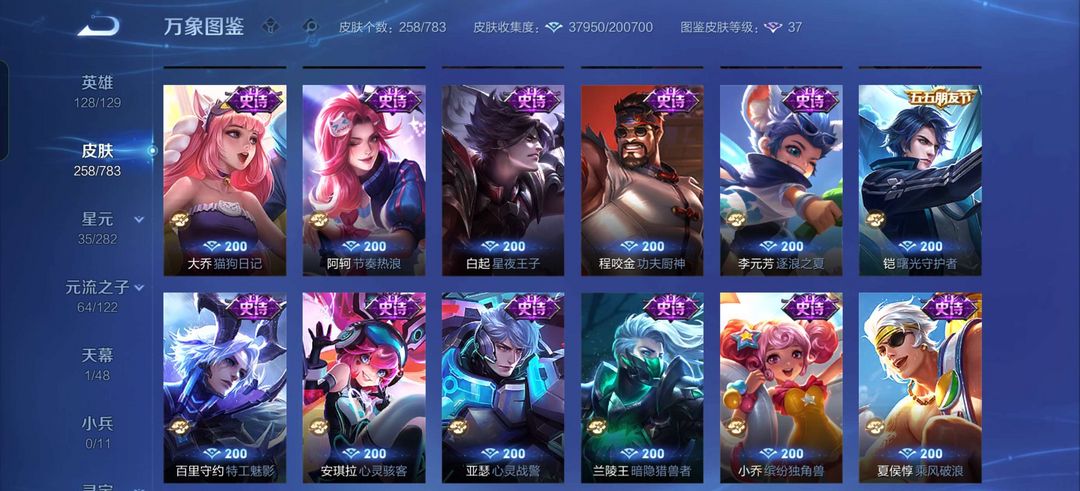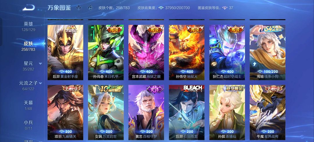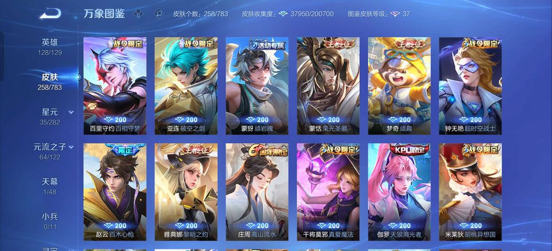 典藏铠➕无双公孙离➕猪年玄策➕鼠年典韦➕龙年赵云|典韦百强号|258皮多年限/传说,省标8个