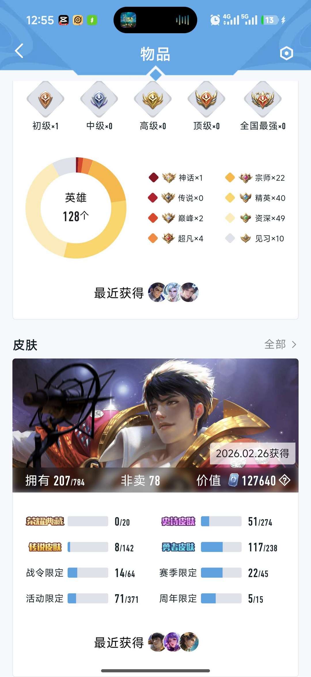 王者段位⭐满铭文150级✨零号赤焰✨至尊宝等限定皮肤,热门英雄全皮,可排位可匹配,账号安全稳定