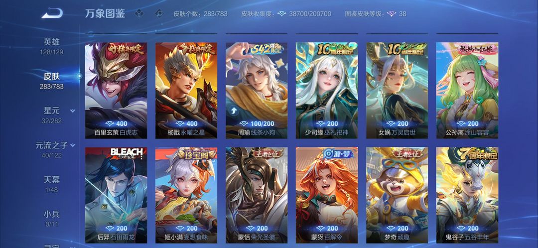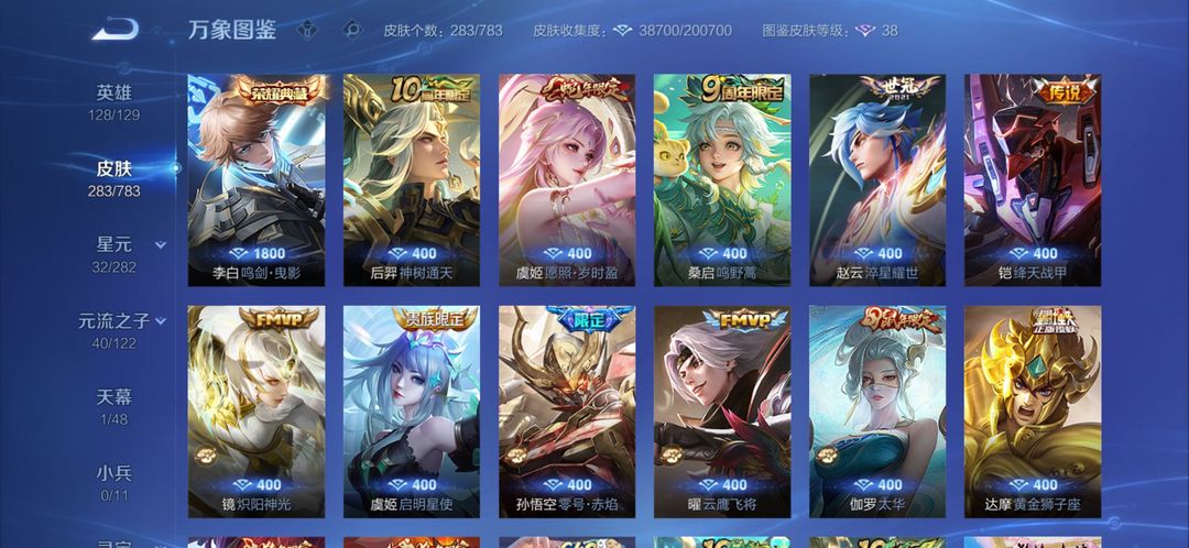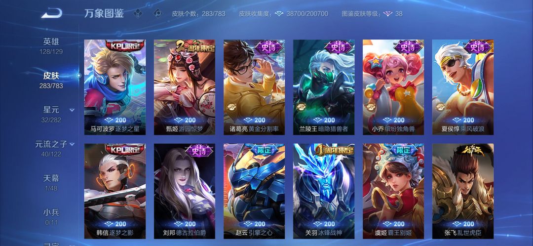 全英雄+李白荣耀典藏+玄策电耗子+各种年限
